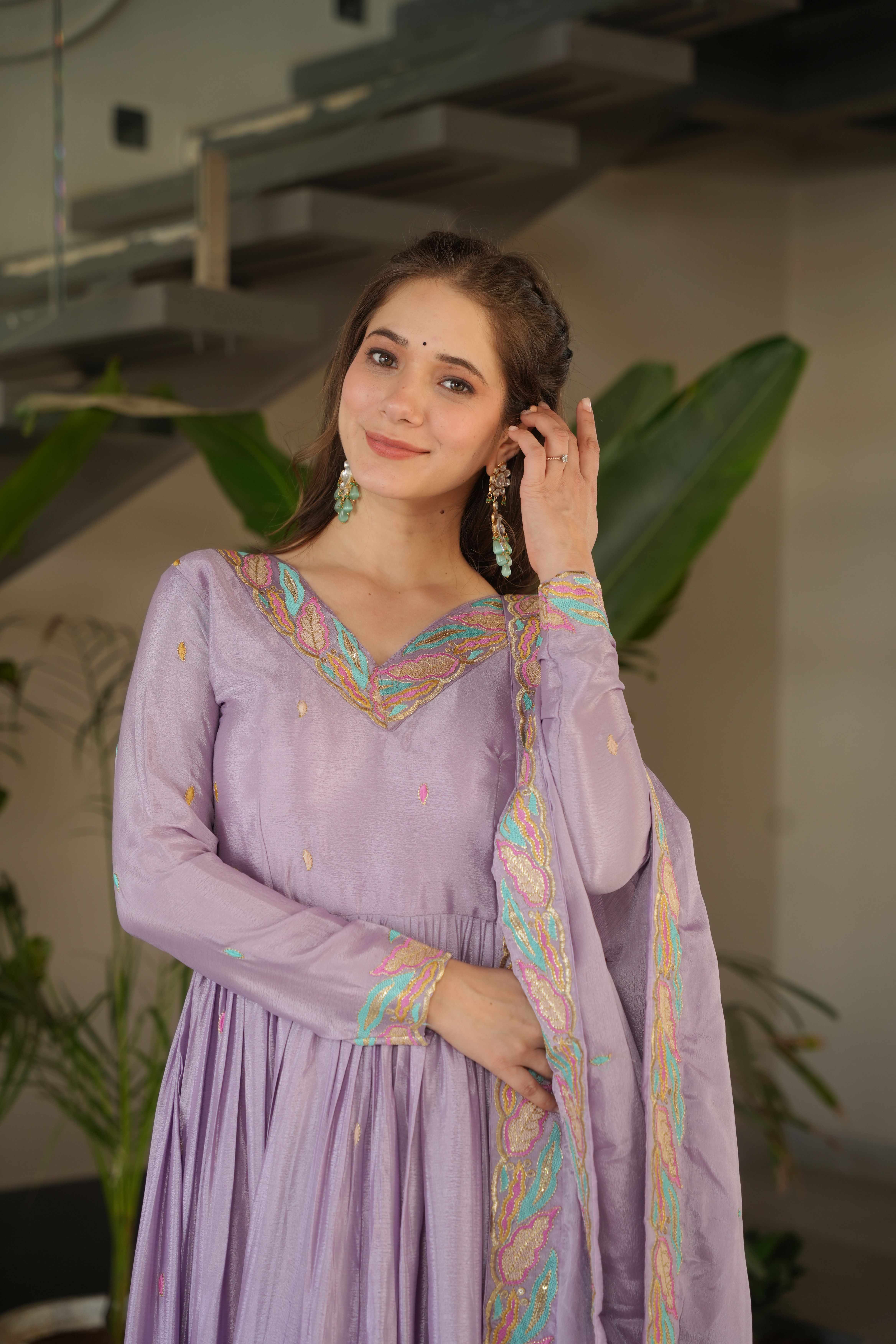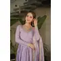Purple Color Ceremonial Gown With Dupatta On Chinon Fabric