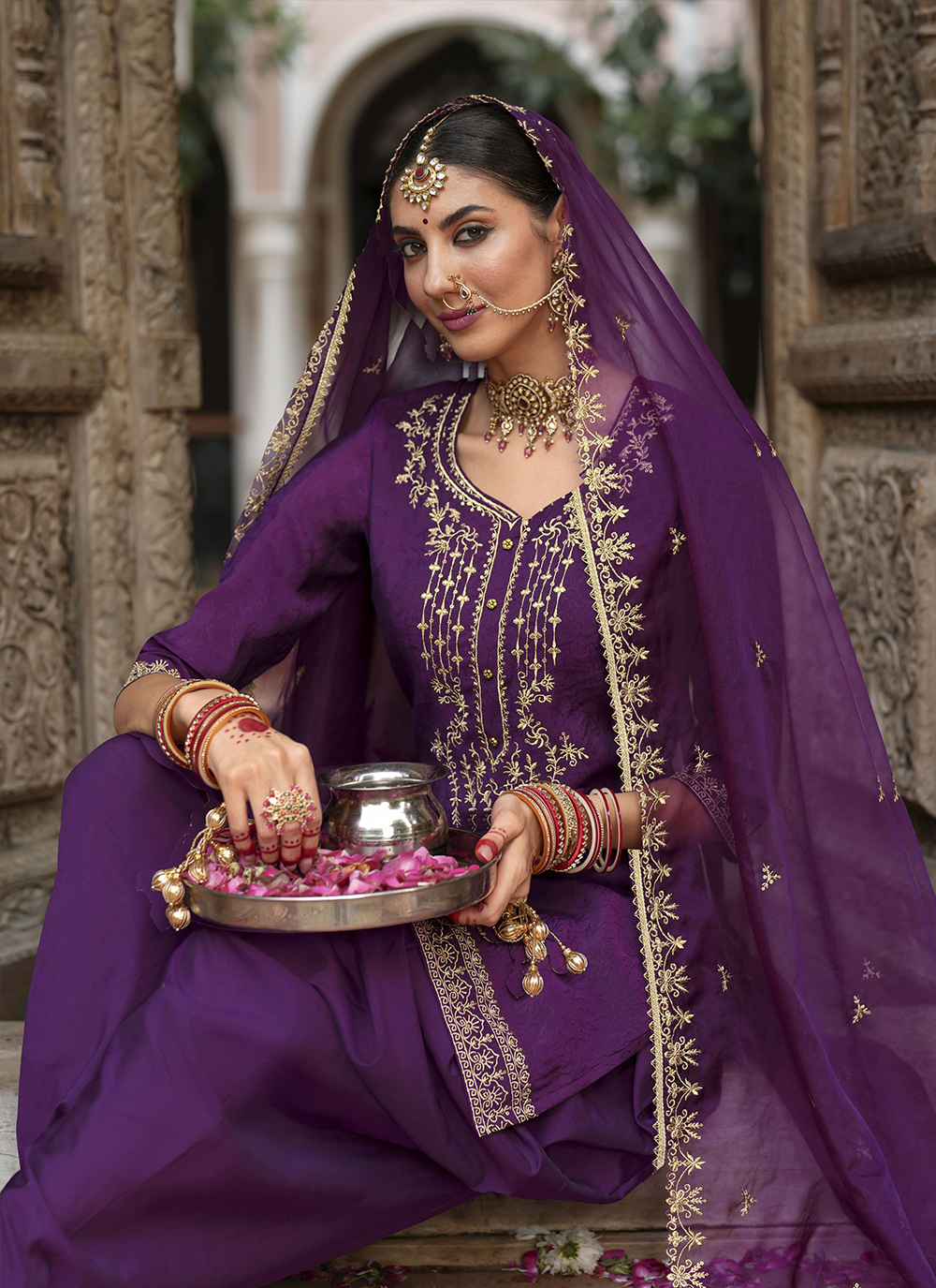 Purple Color Ceremonial Wear Beautiful Designer Viscose Silk Dhoti Style Suit