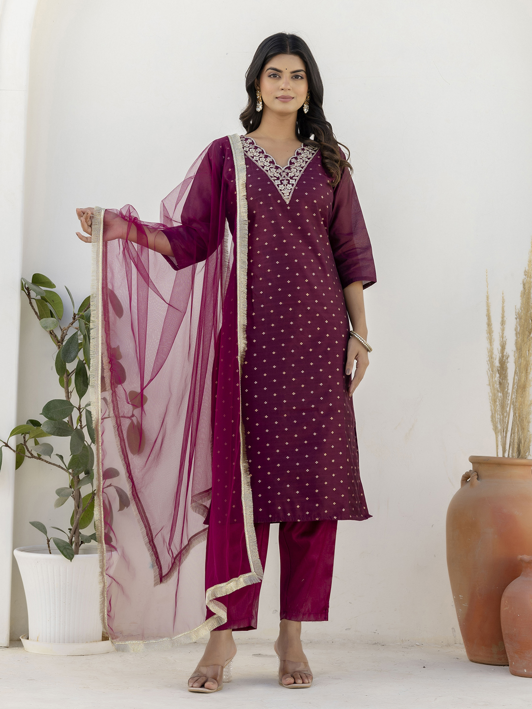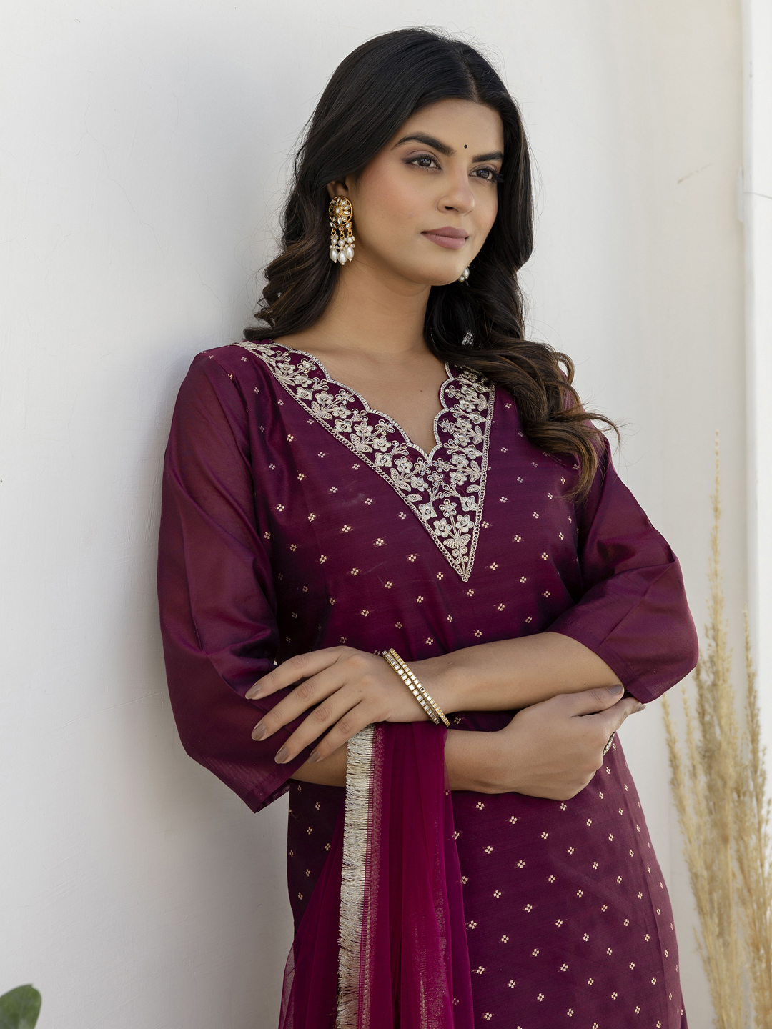 Purple Color Chanderi Silk Fabric Beautiful Festive Wear Readymade Kurta Set