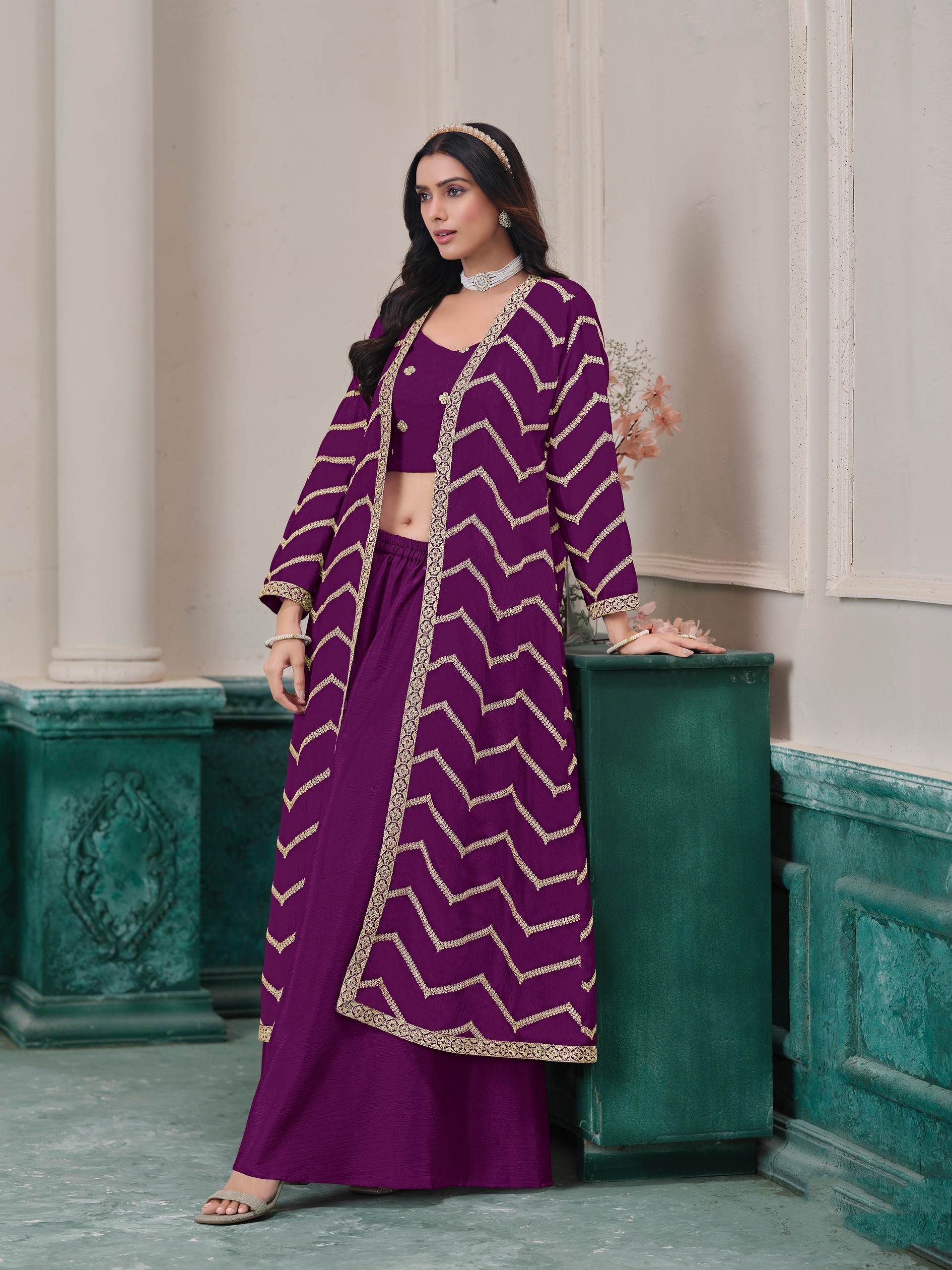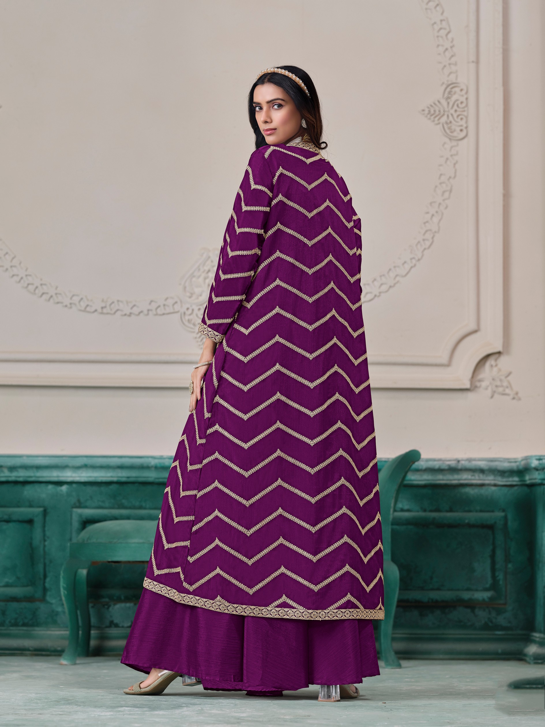 Purple Color Designer Wedding Ceremonial Wear Designer Palazzo Dress With Shrug