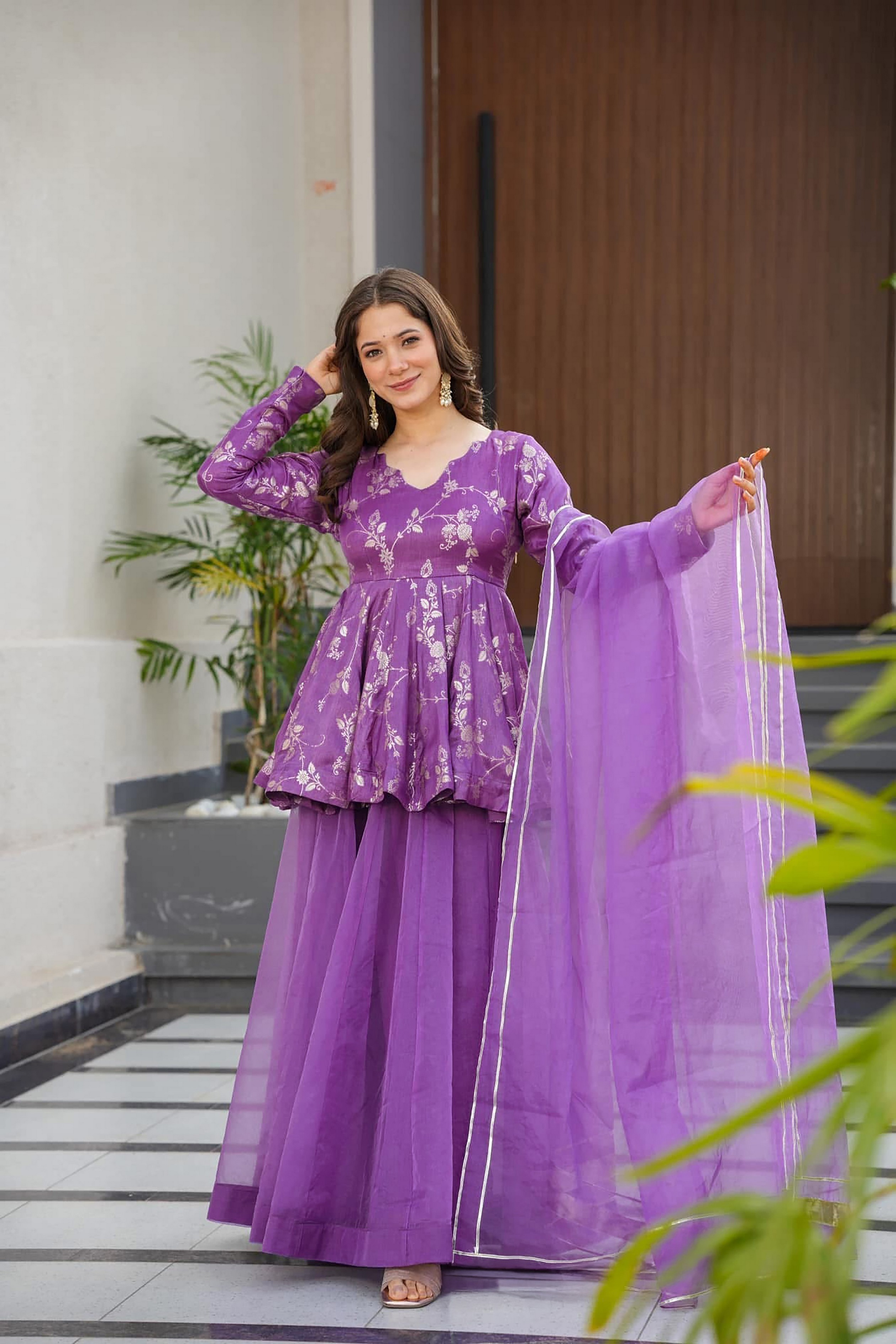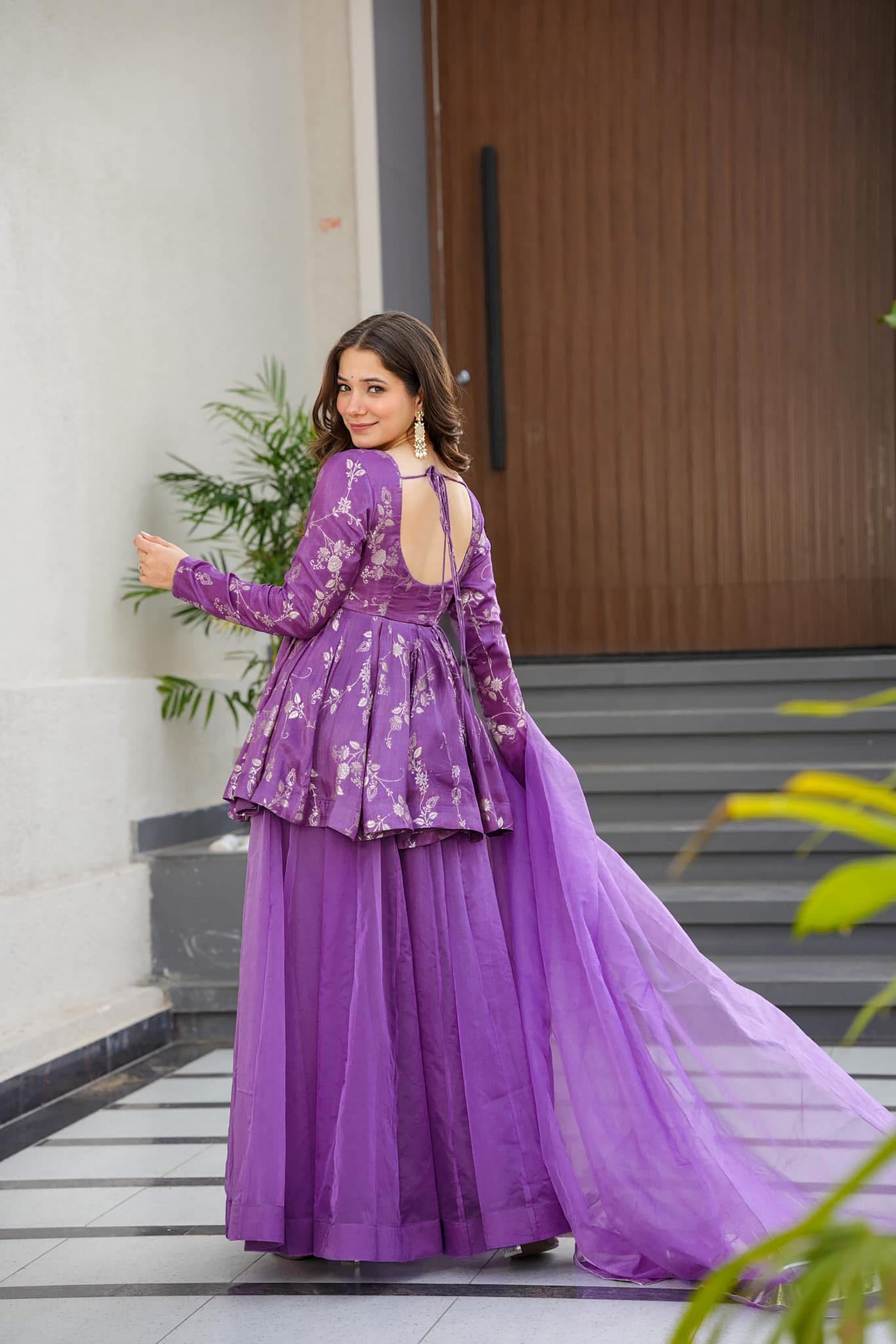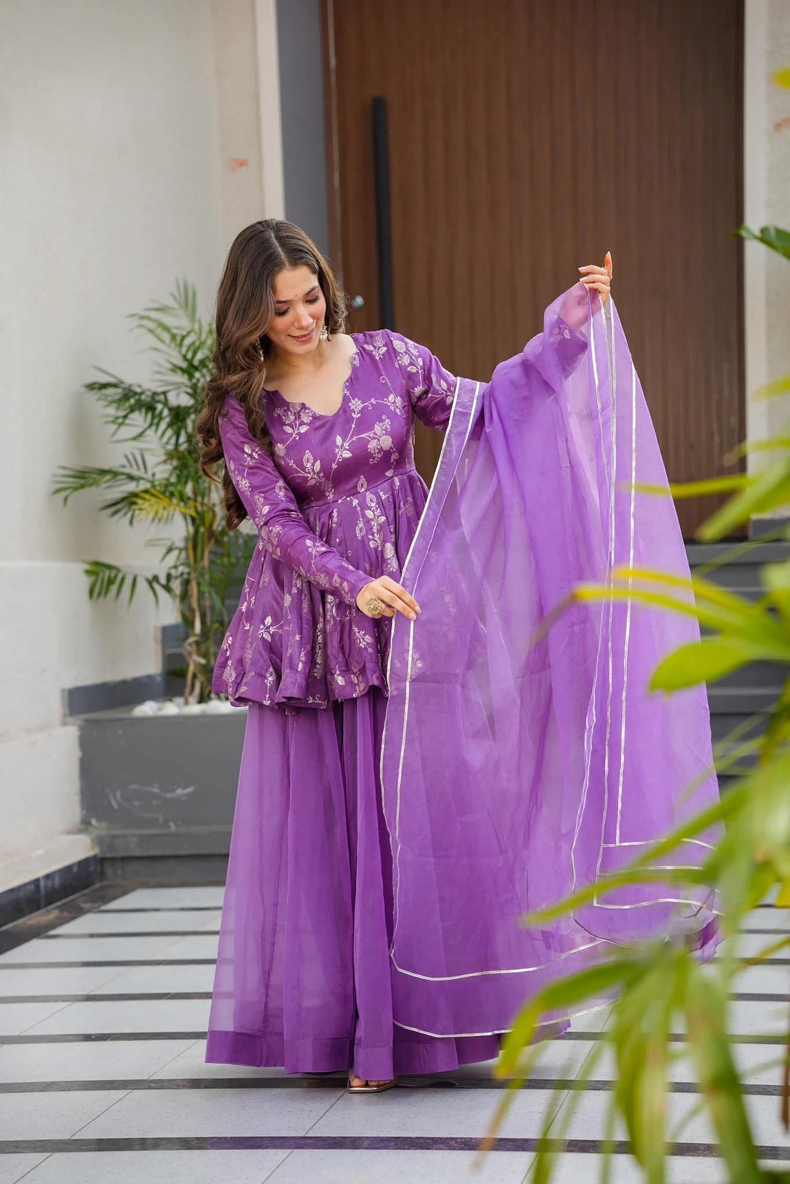 Purple Color Ethnic Readymade Sharara Dress For Partywear Looks