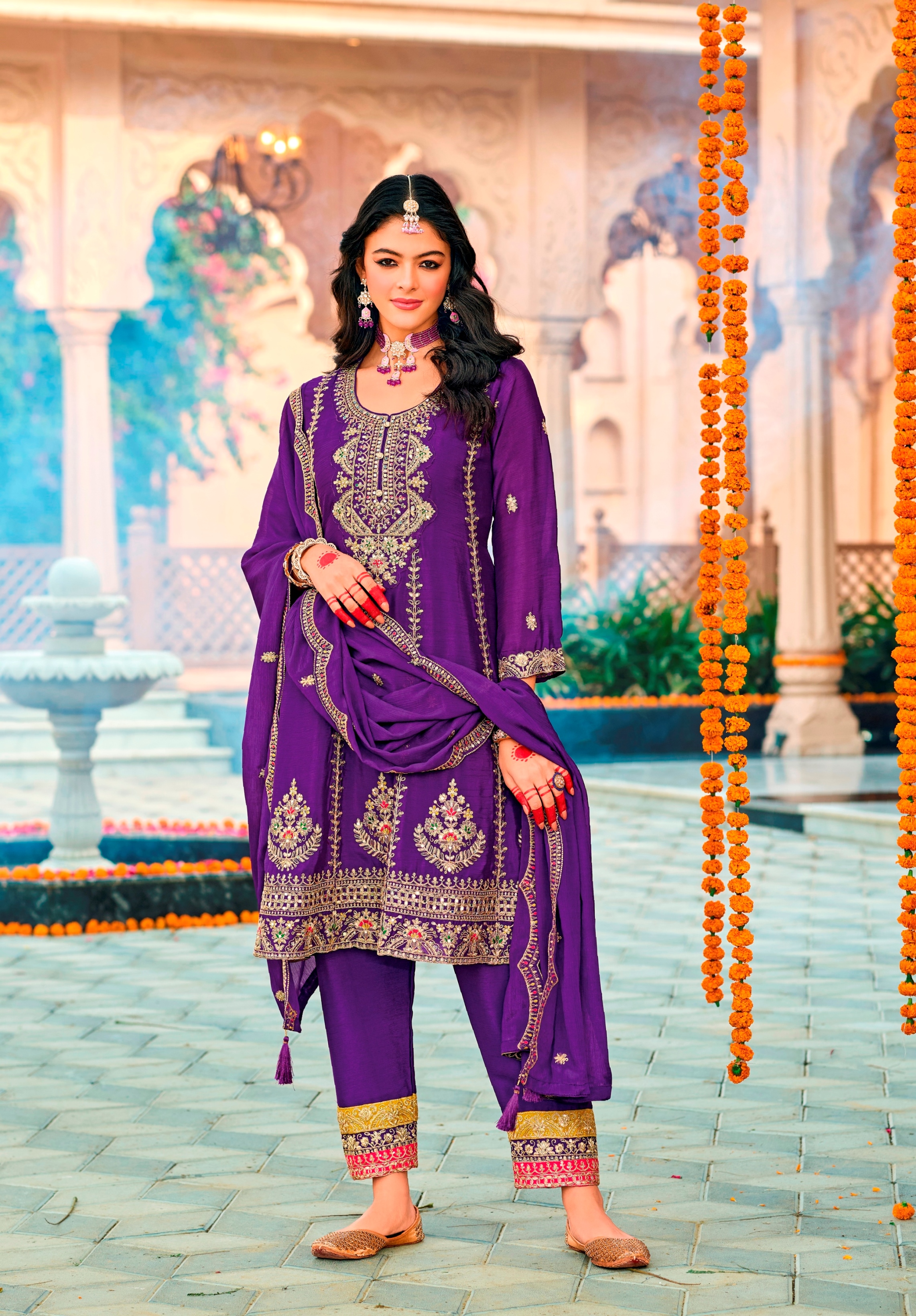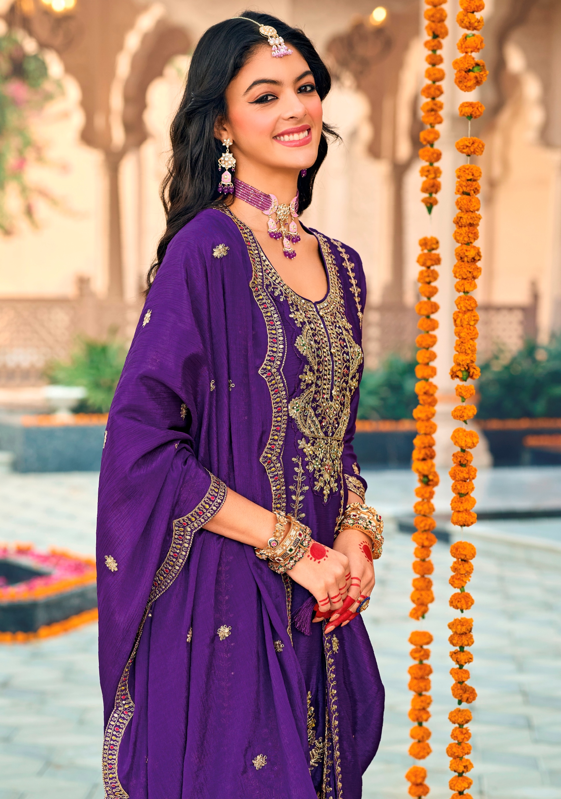 Purple Color Heavy Embroidered Chinon Fabric Designer Salwar Kameez