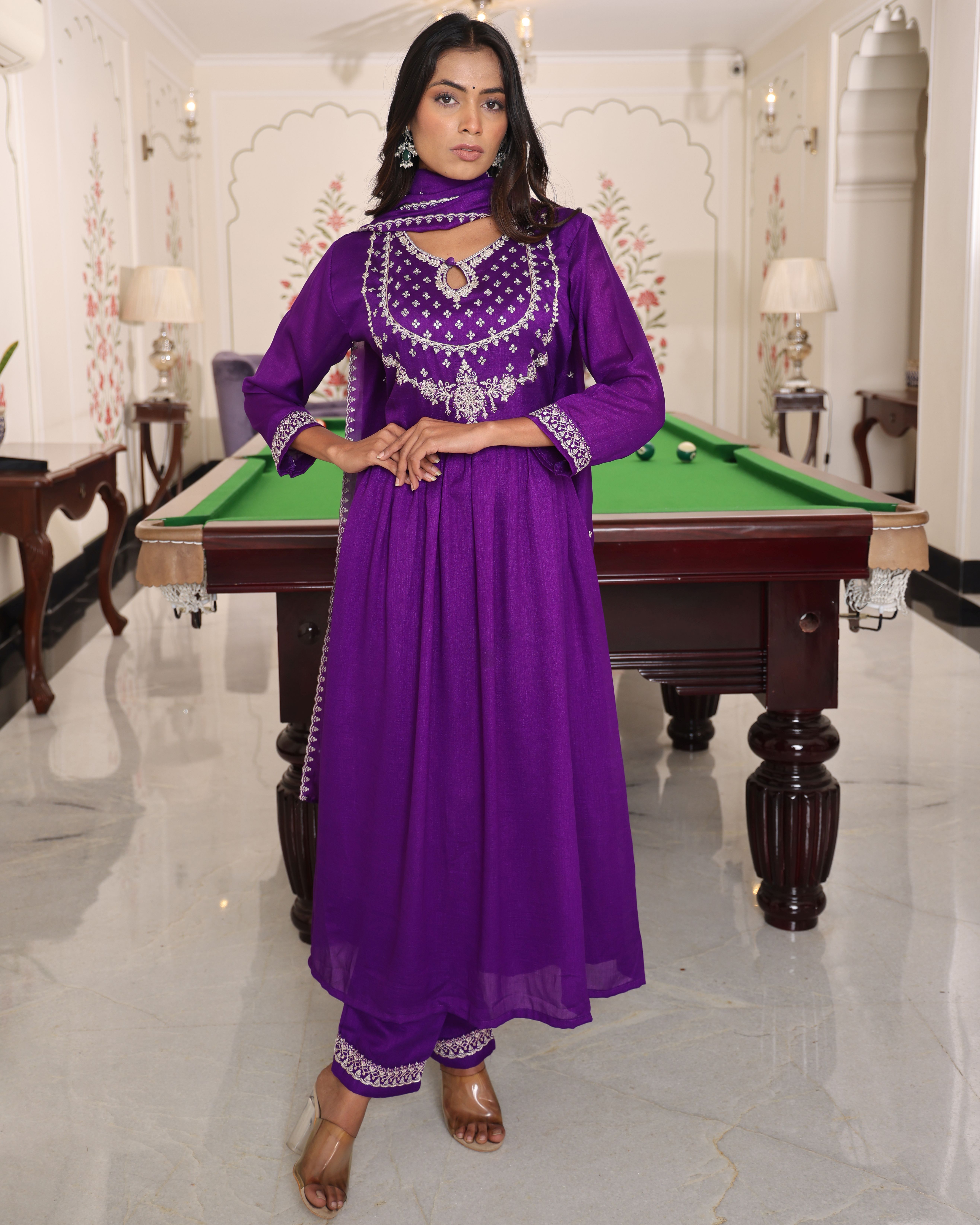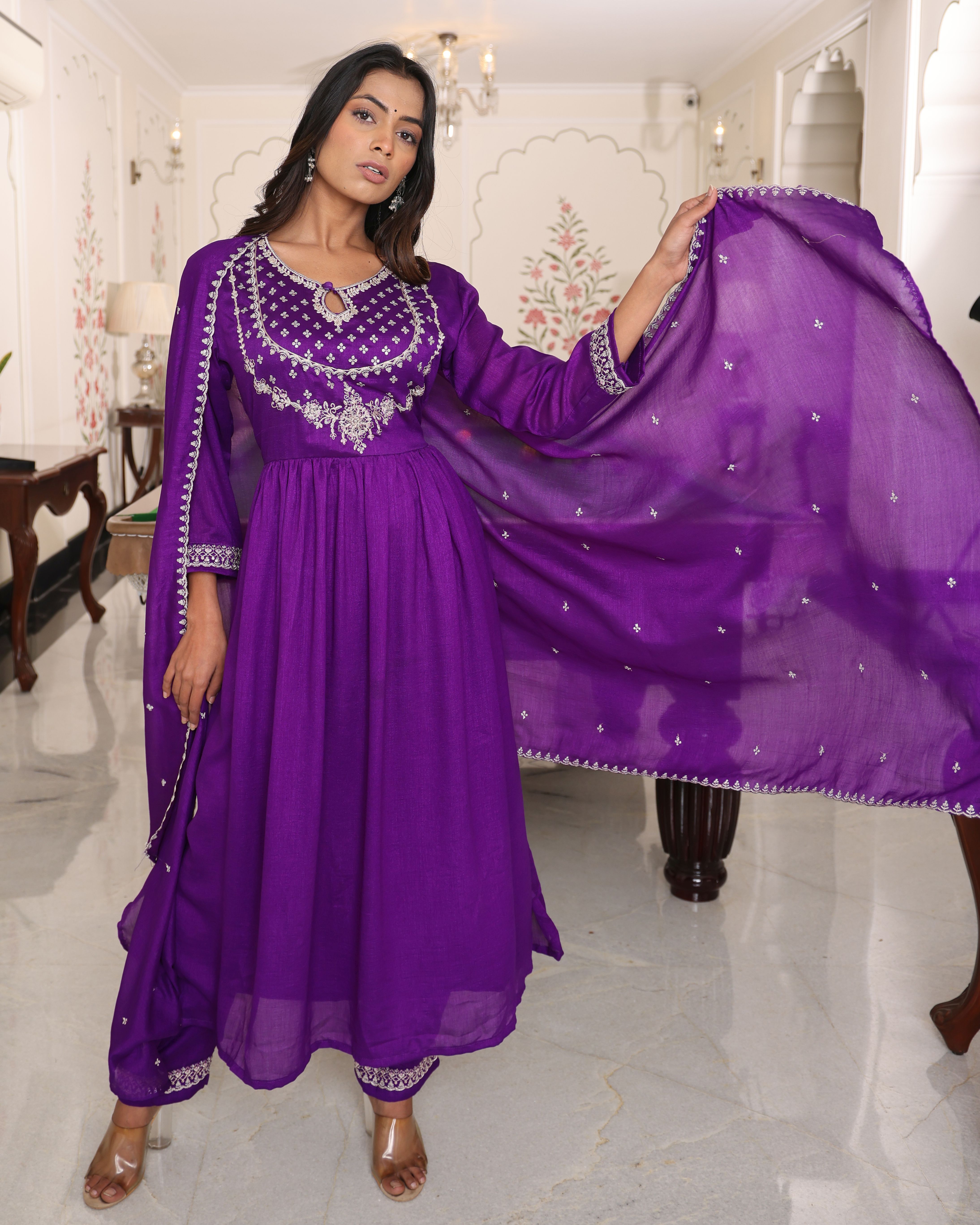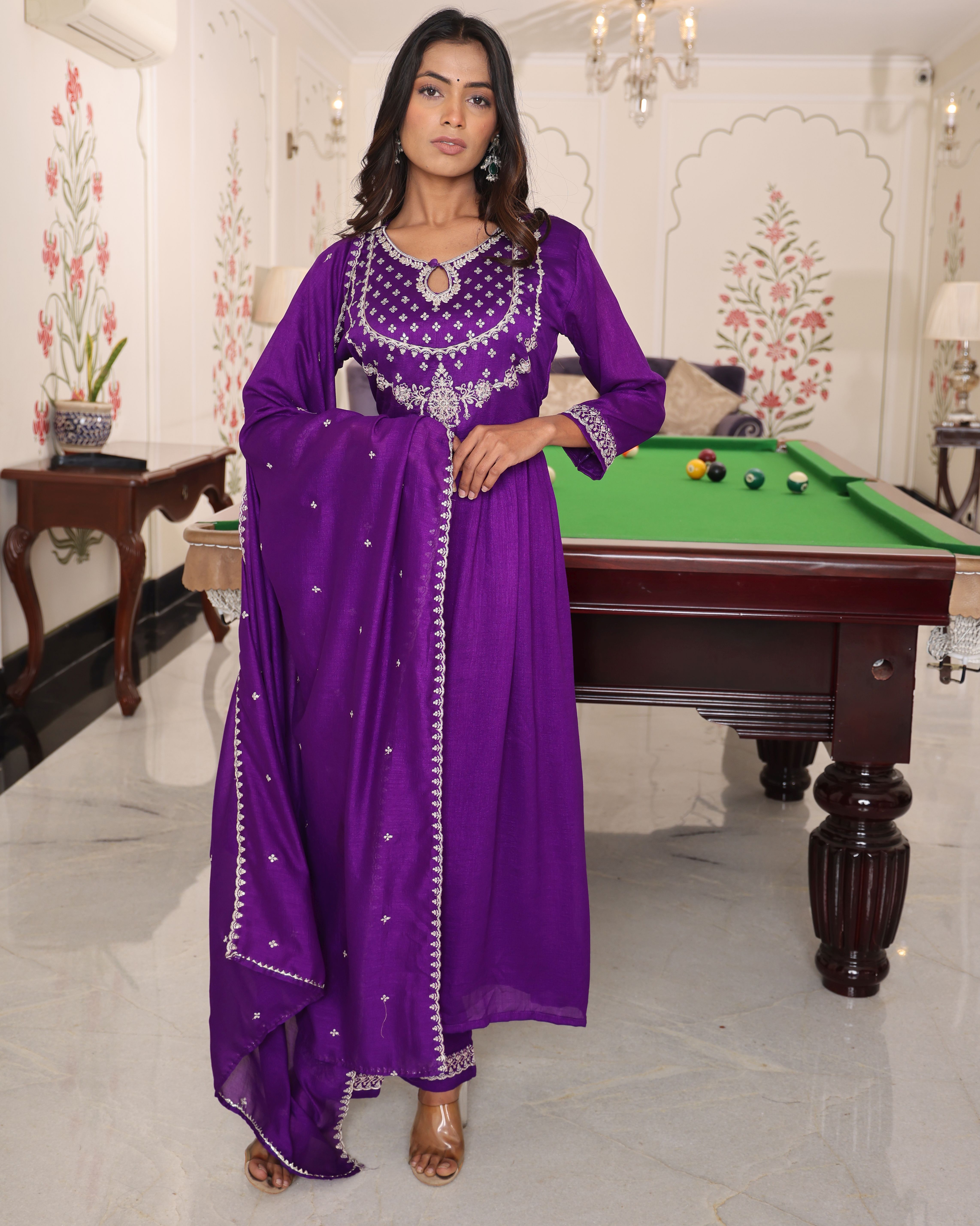 Purple Color Soft Silk Fabric Designer Embroidered Heavy Ceremonial Wear Salwar Kameez
