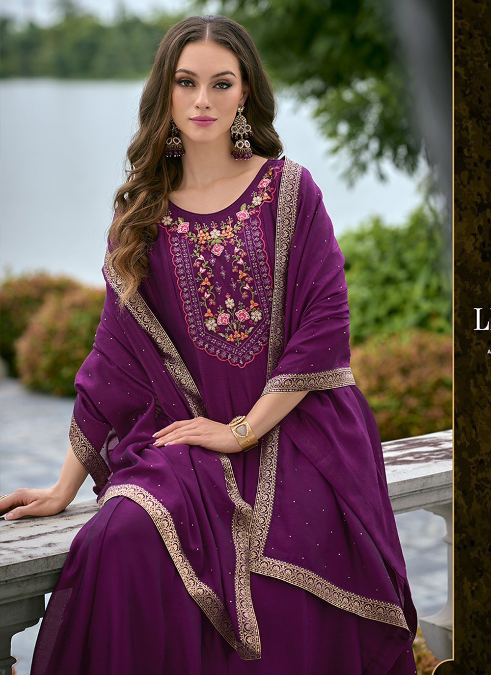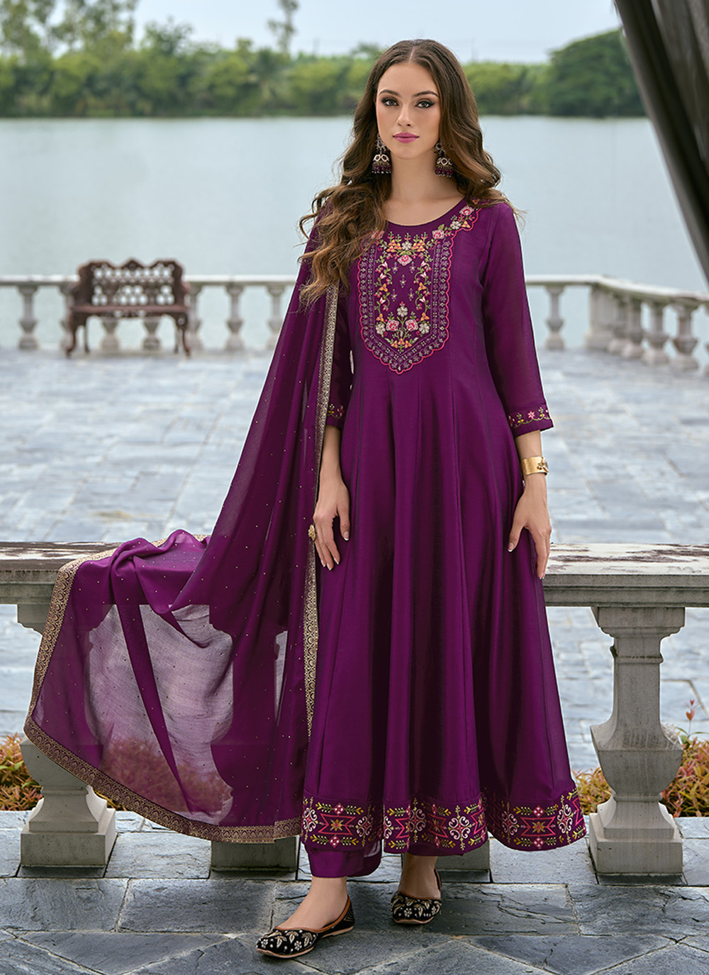 Purple Color Vichitra Silk Fabric Stitched Salwar Kameez For Ceremonial Looks