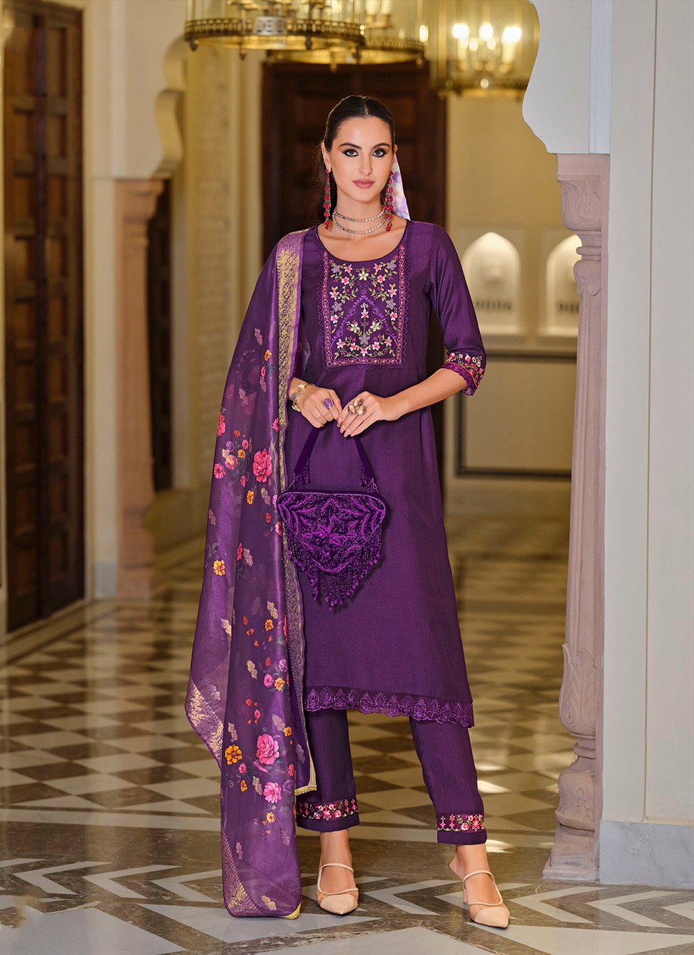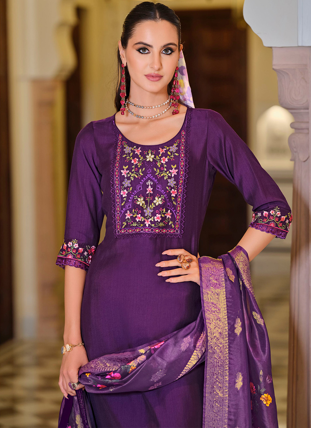 Purple Color Viscose Fabric Designer Embroidered Readymade Suit