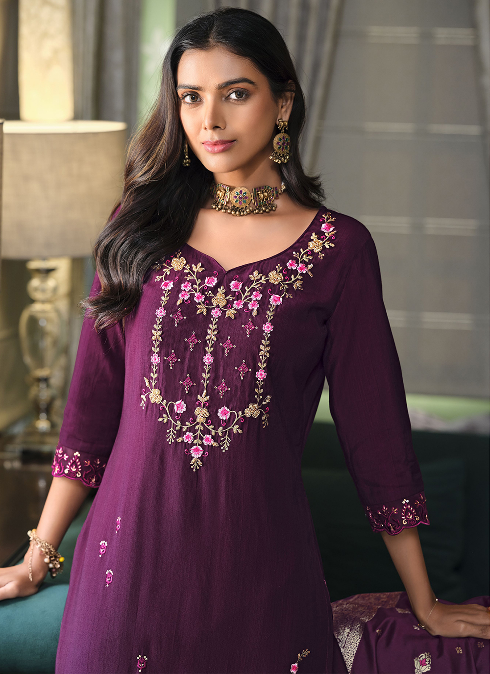 Purple Color Viscose Fabric Woven Designer Readymade Suit With Hand Work