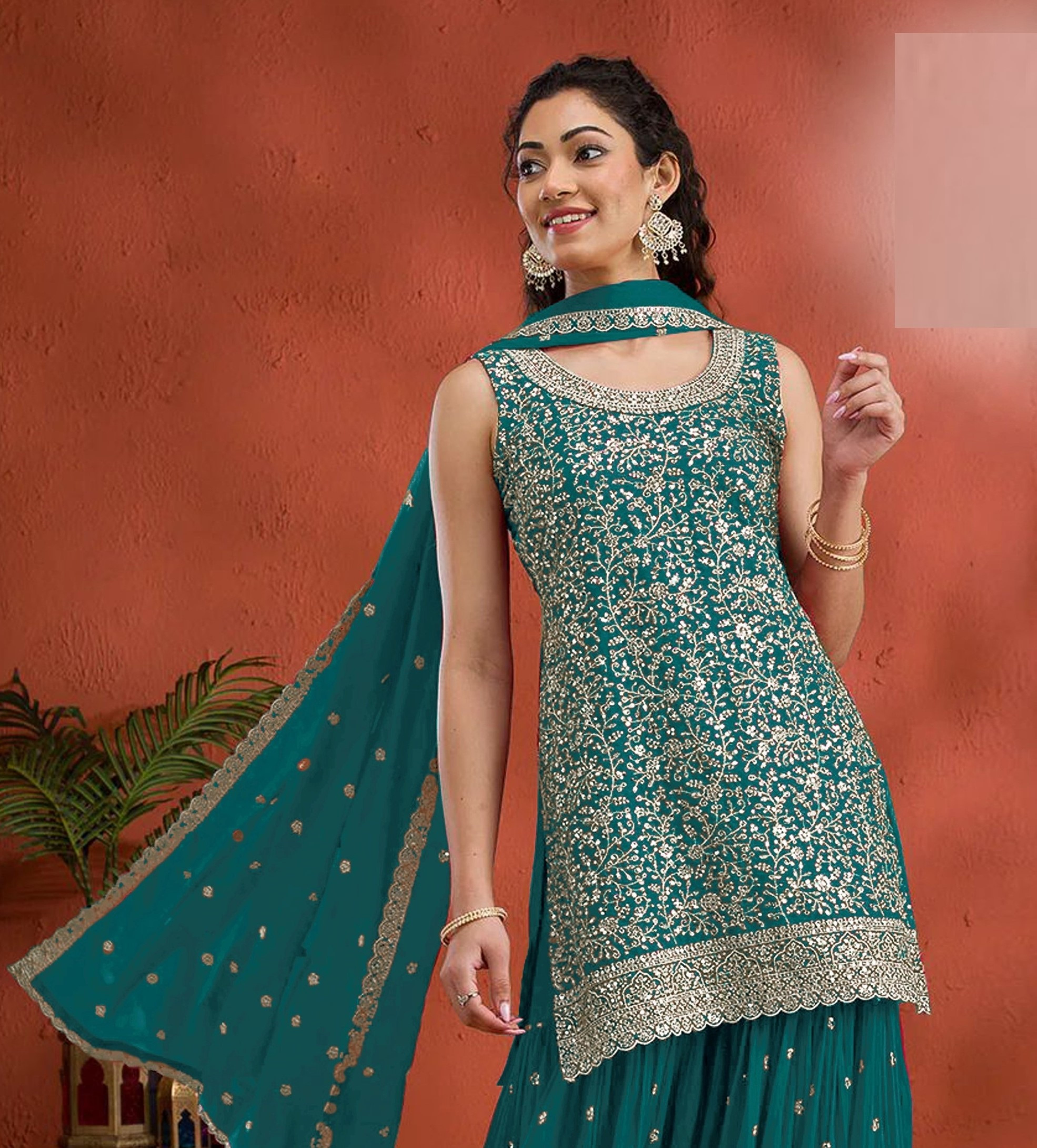 Looking These Party Wear Designer Plazzo Suits in Fine Colored Pair With Dupatta.These Top Are Georgette And Dupatta Are Fabricated On Georgette Pair With Georgette Bottom.Its Beautified With Designer Embroidery Work.