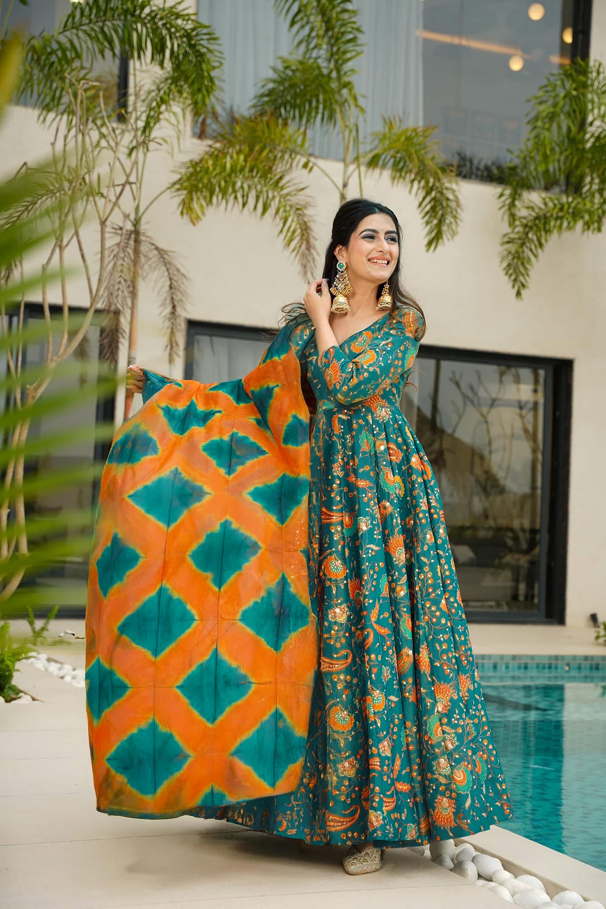 Rama Color Ceremonial Wear Stylish Girlie Gown With Dupatta For Ethnic Looks