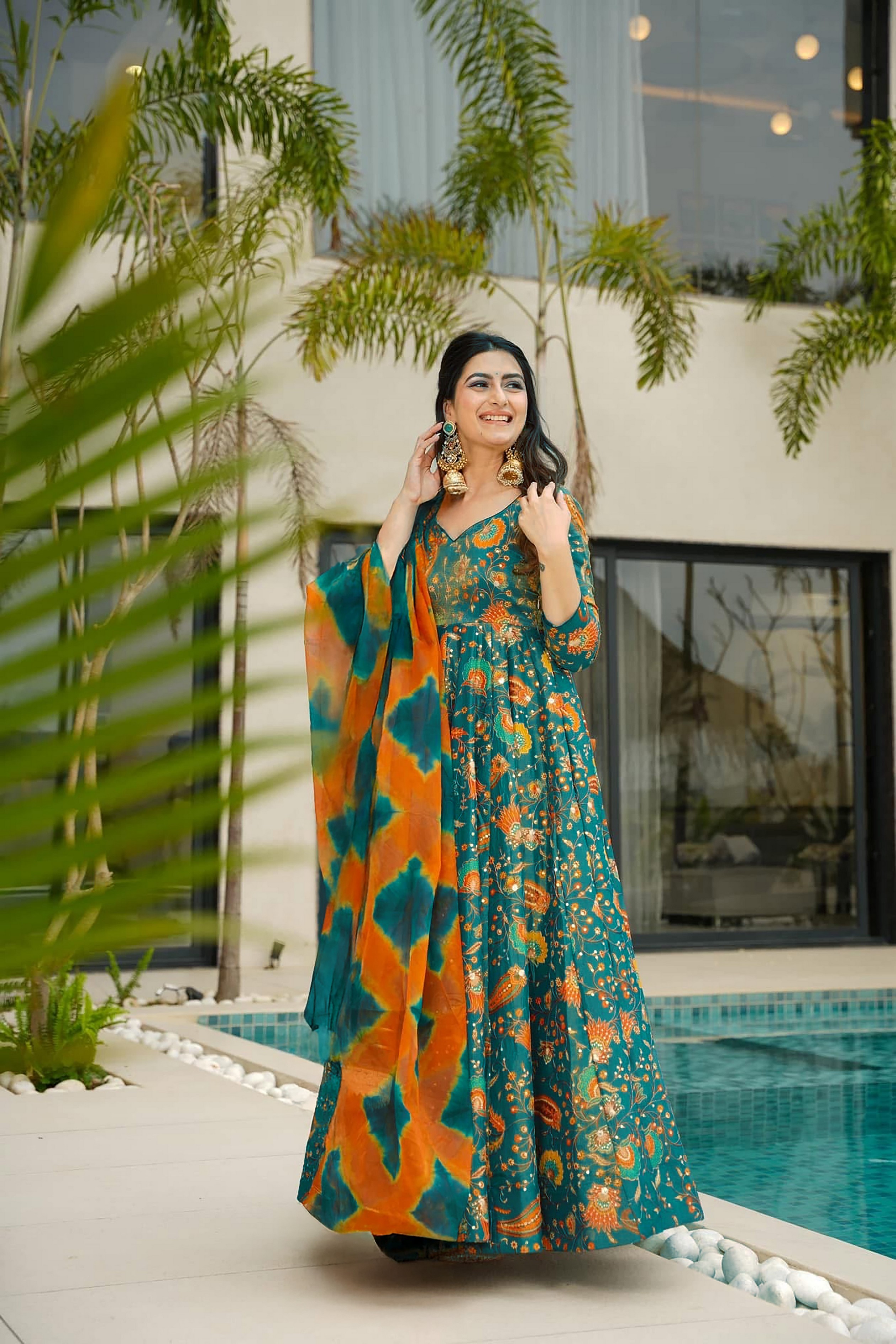 Attractive Looking These Beautiful Looking Readymade Long Gown With Dupatta.These Gown Are Silk is Fabricated And Tebby Silk Dupatta.Its Beautified With Designer Digital Printed.