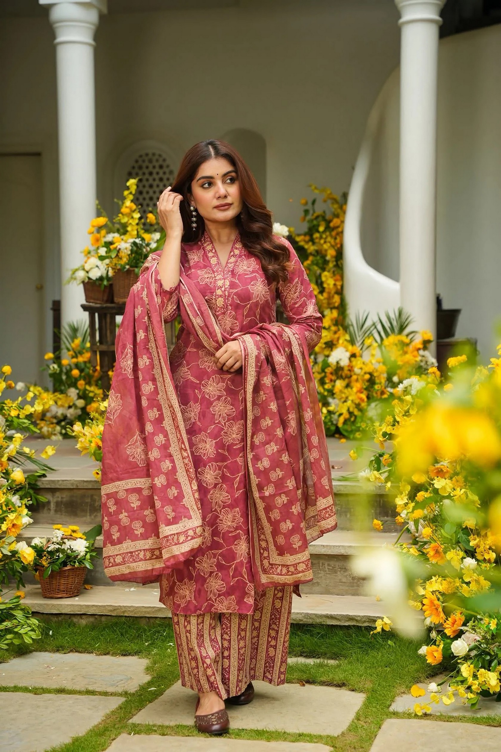 Red Color Beautiful Printed Muslin Fabric Readymade Palazzo Dress