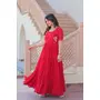 Red Color Faux Georgette Beads Embroidery Work Ethnic And Designer Ceremonial Wear Gown