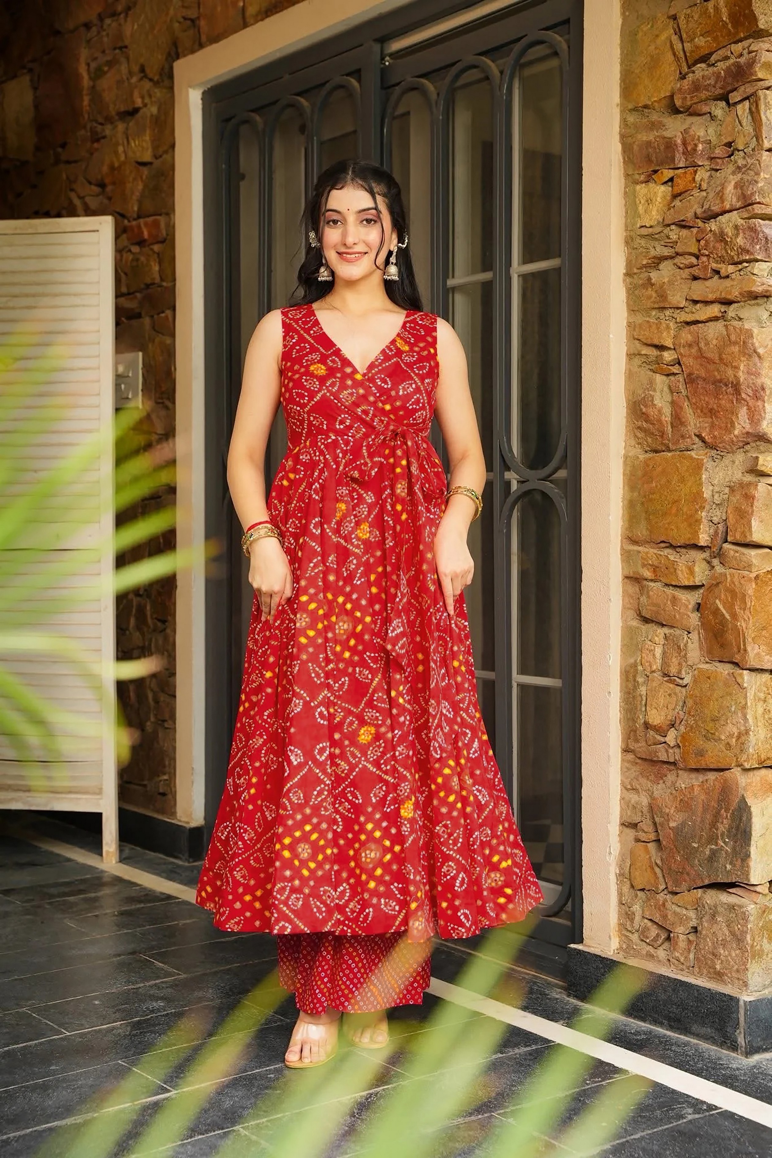 Red Color Rayon Fabric Palzzo Kurta Dress For Ethnic Party Looks