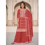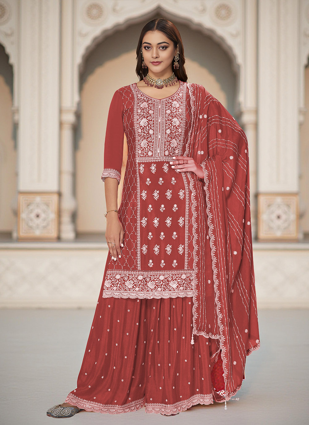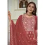 Rust Color Heavy Embroidery Work Chinon Fabric Ethnic Indian Palazzo Suit