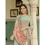 Sea Green Color Beautiful Natural Crepe Fabric Readymade Stylish Ethnic Suits For Girls