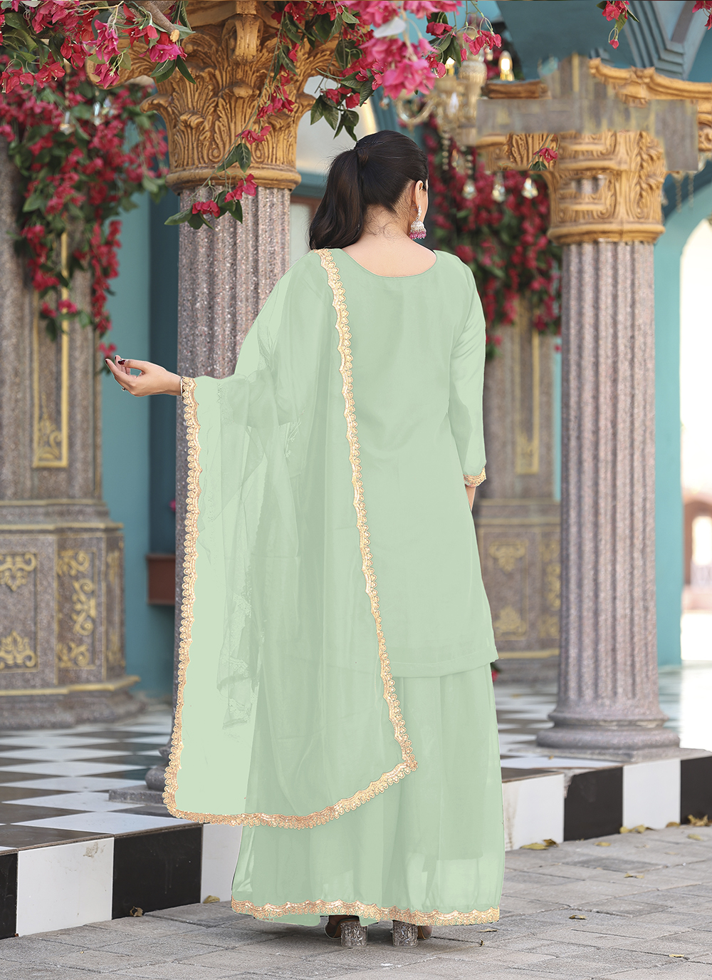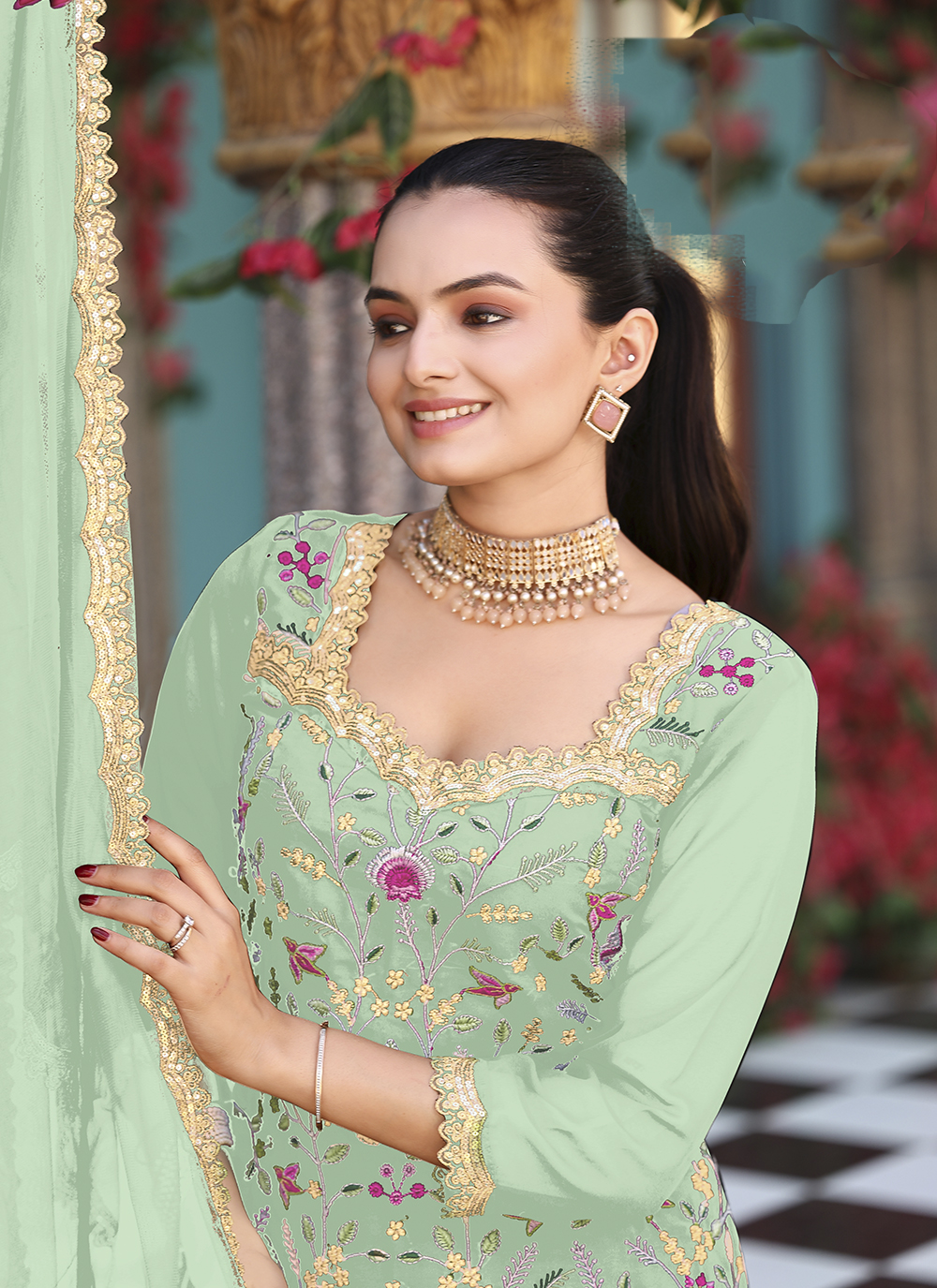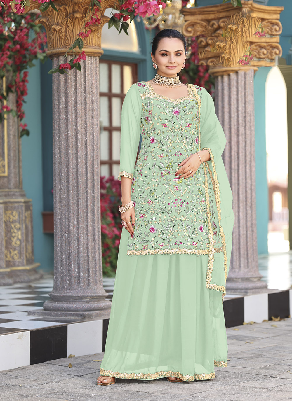Sea Green Color Georgette Fabric Designer Ceremonial Wear Wedding Attire