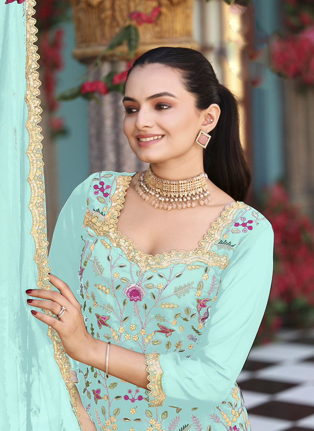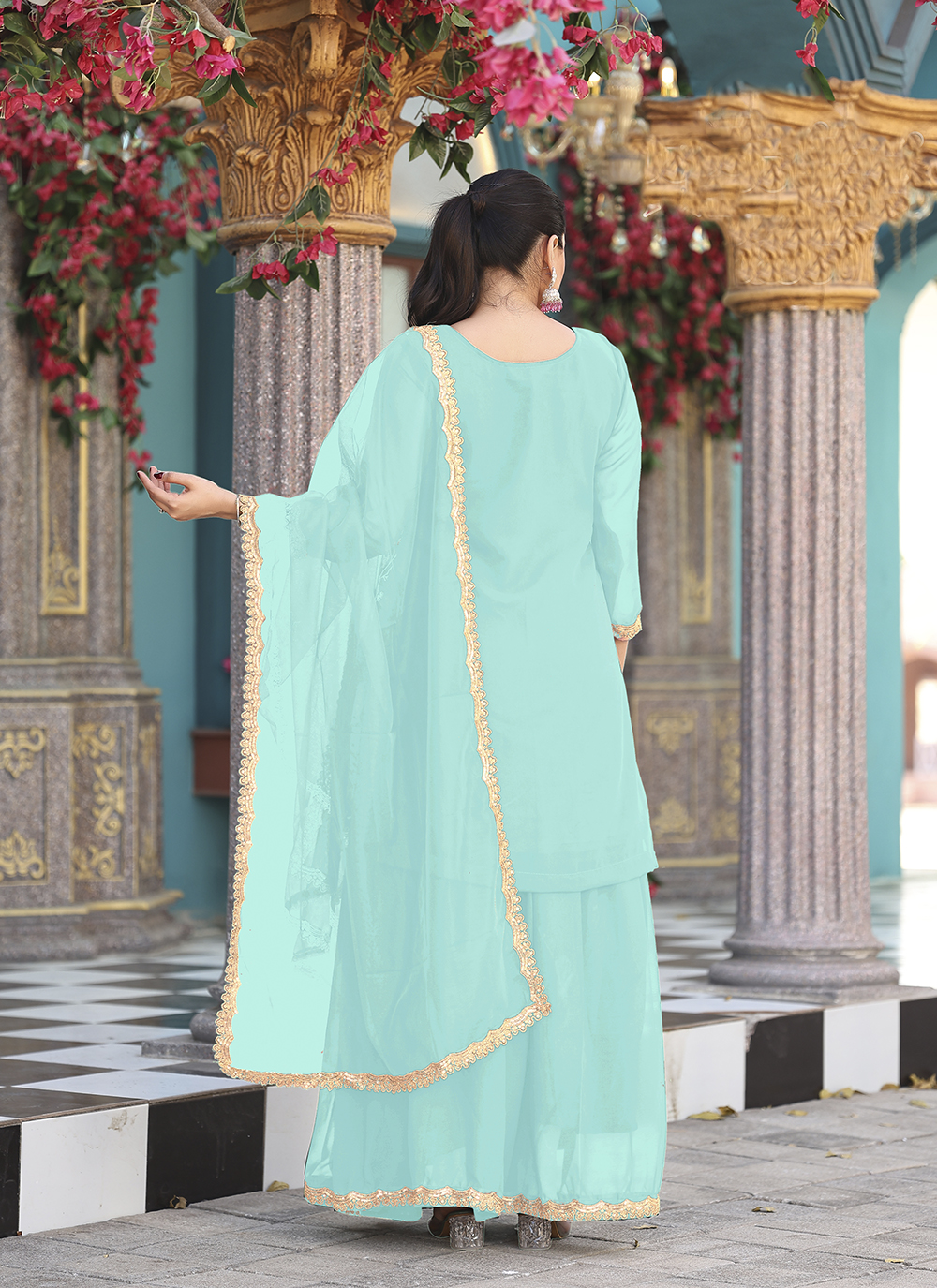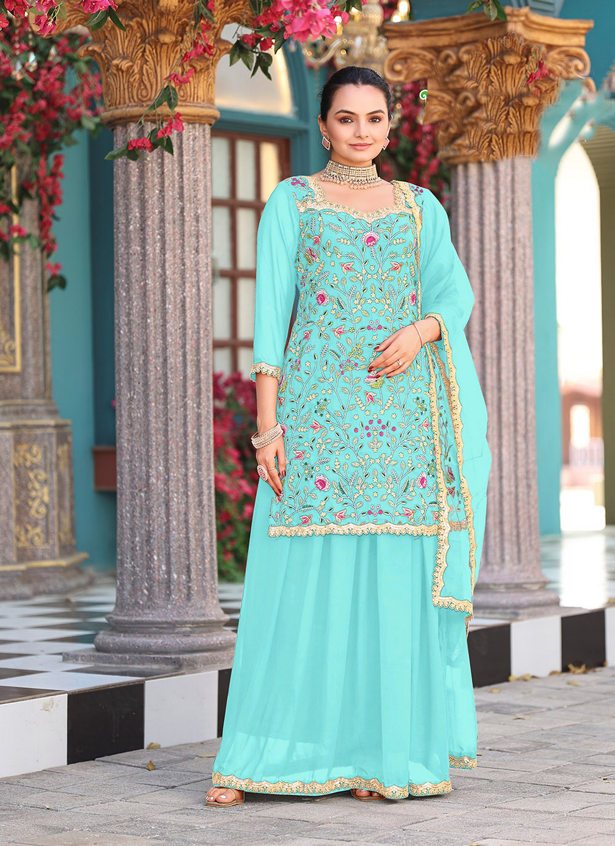 Sea Green Color Graceful Heavy Embroidered Palazzo Dress For Wedding Looks