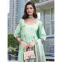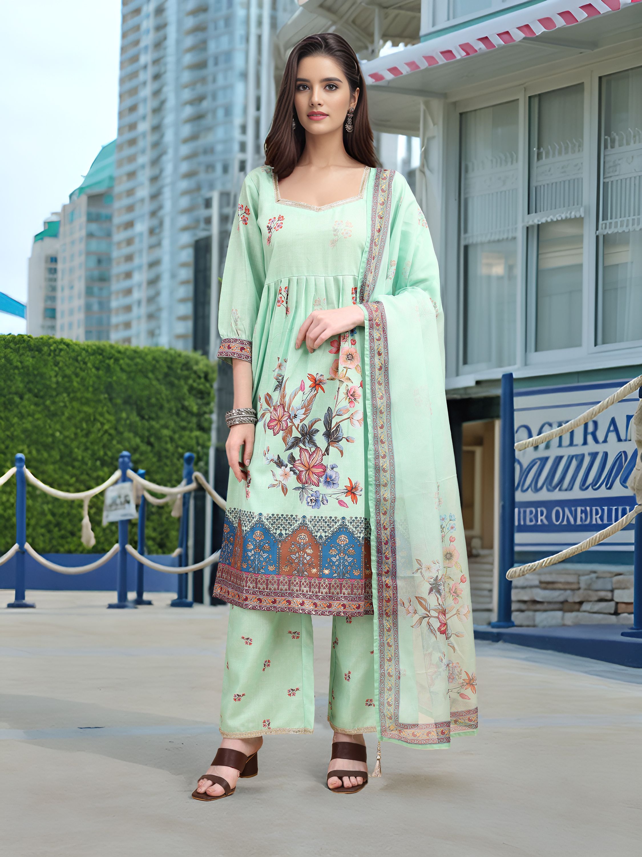 Sea Green Color Linen Fabric Digital Printed Ethnic Readymade Suit For Trendy Looks