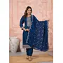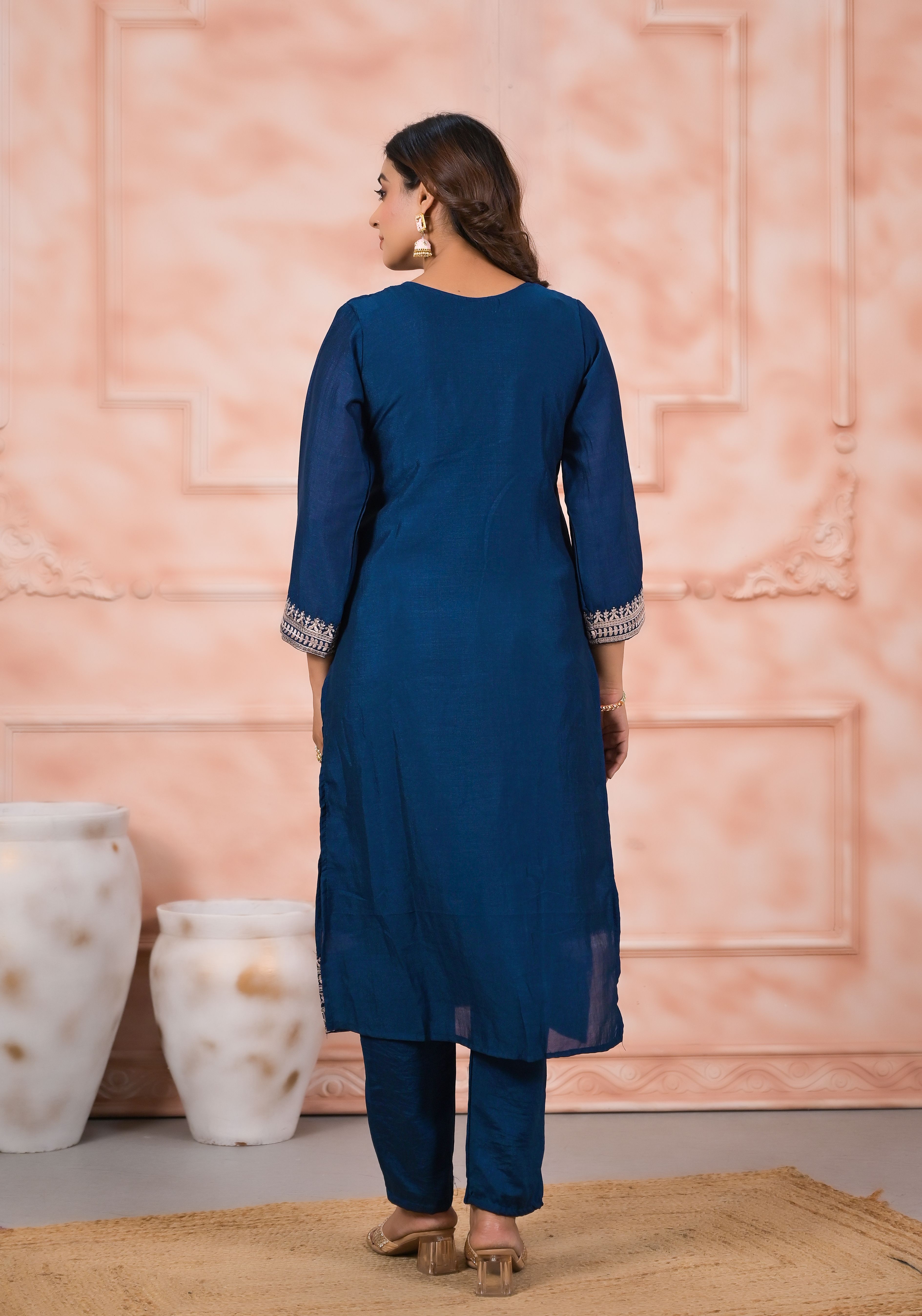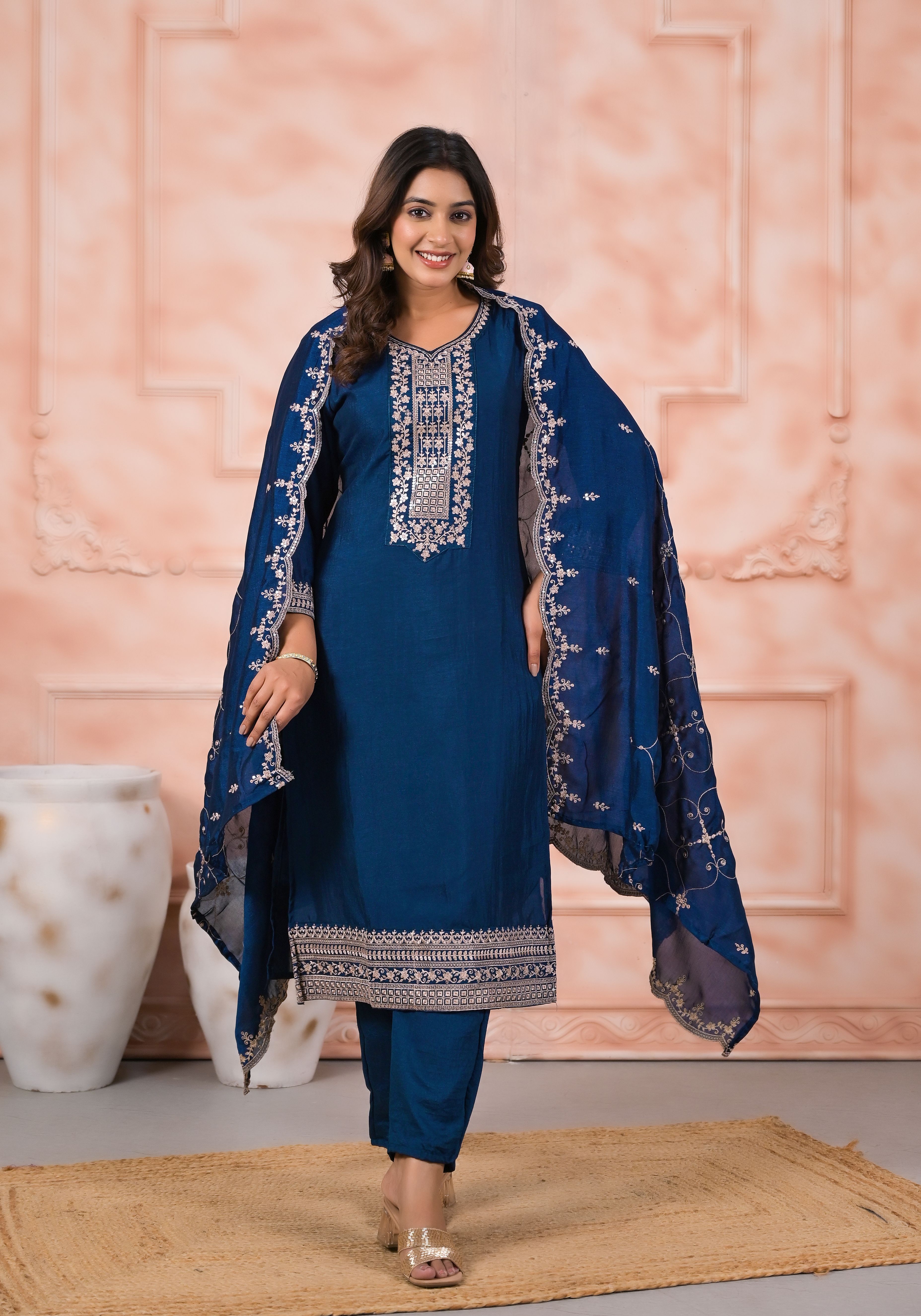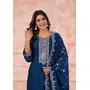 Teal Blue Color Silk Fabric Designer Embroidery Work Ceremonial Kurta Set With Dupatta