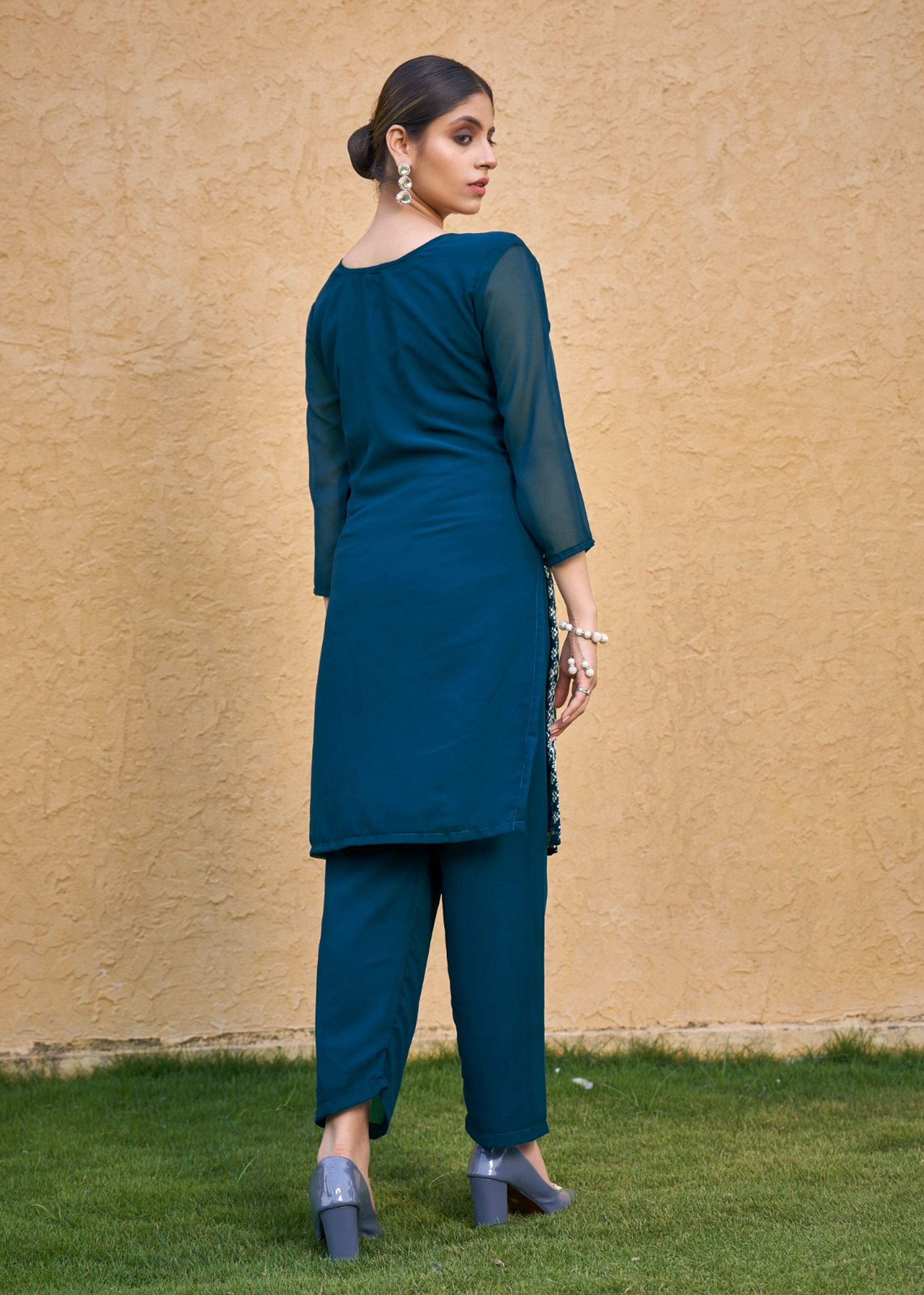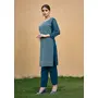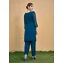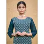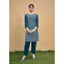 Teal Blue Color Thread Embroidery Work Casual Georgette Kurti