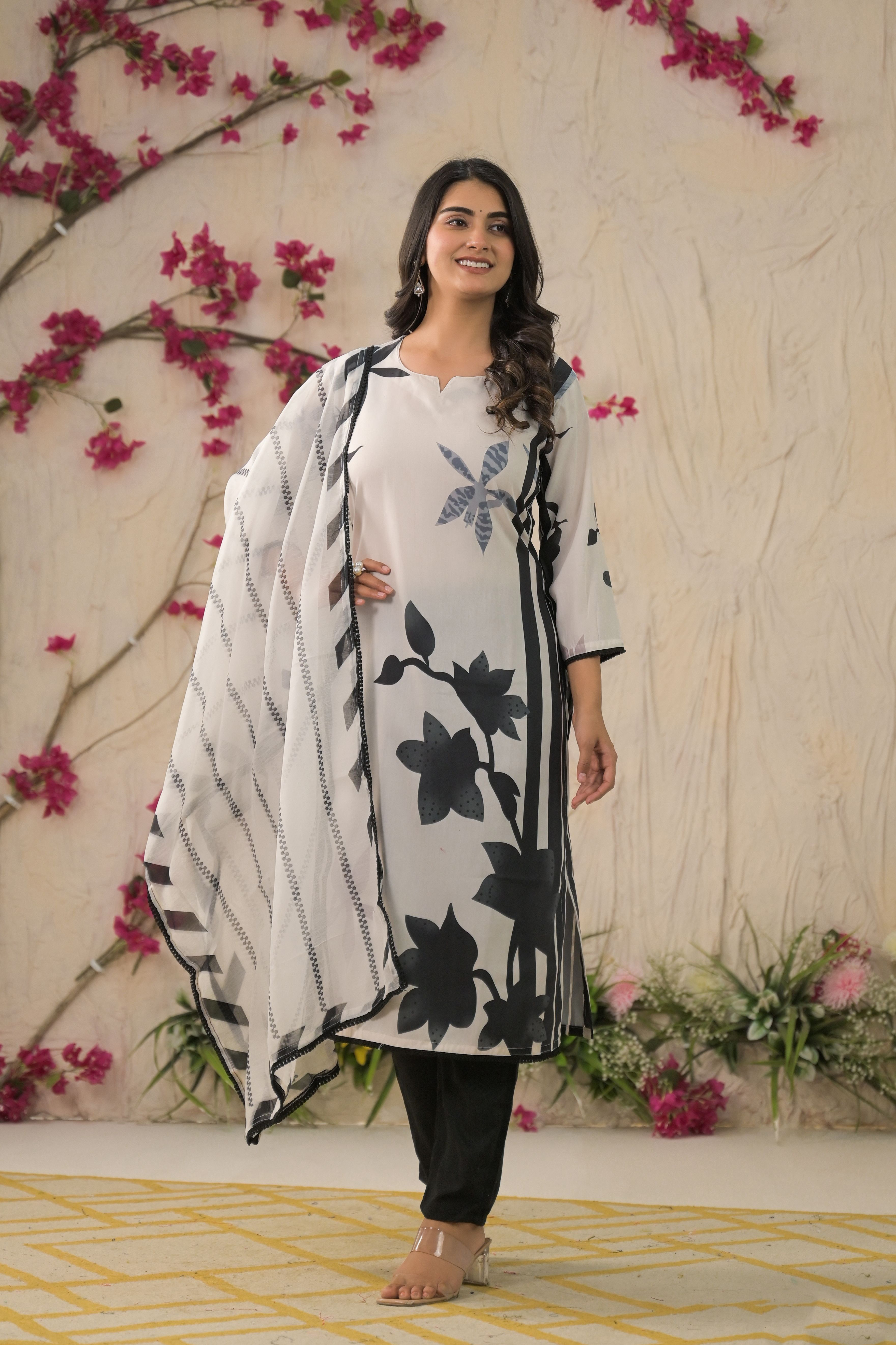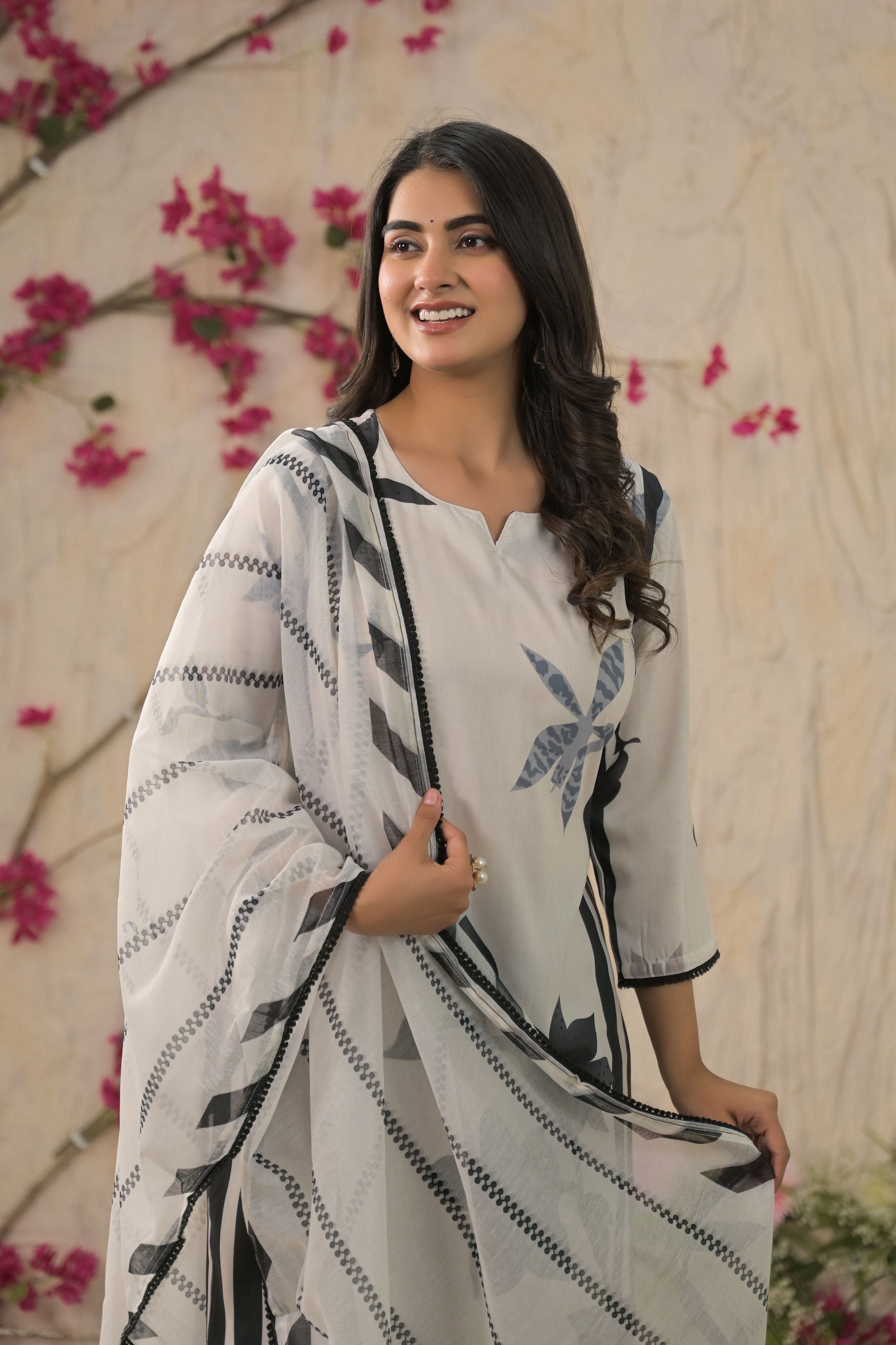 White Color Muslin Fabric Beautiful Fancy And Ethnic Kurta Set With Dupatta
