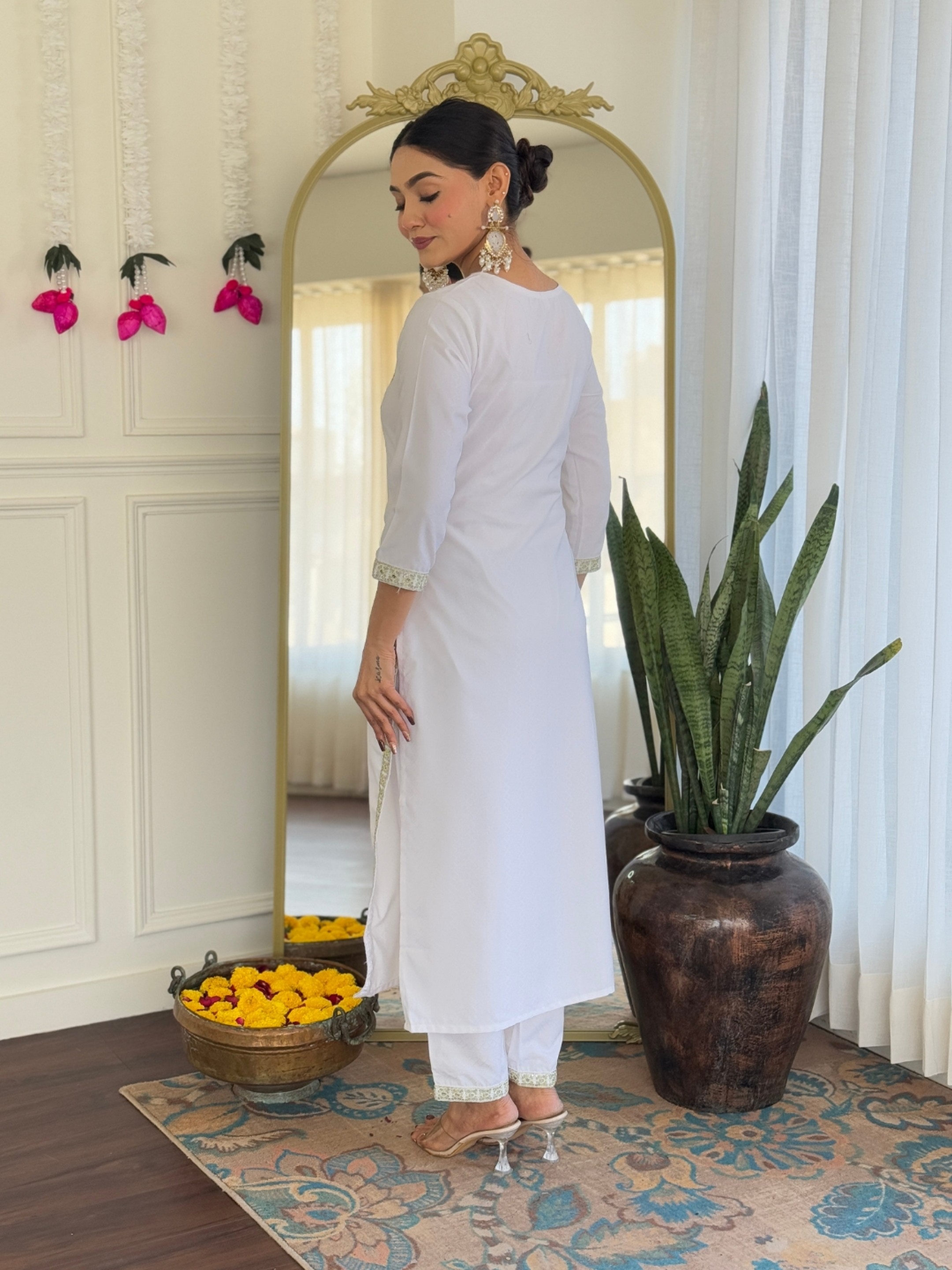 White Color Viscose Fabric Designer Embroidered Readymade Kurta Set With Dupatta
