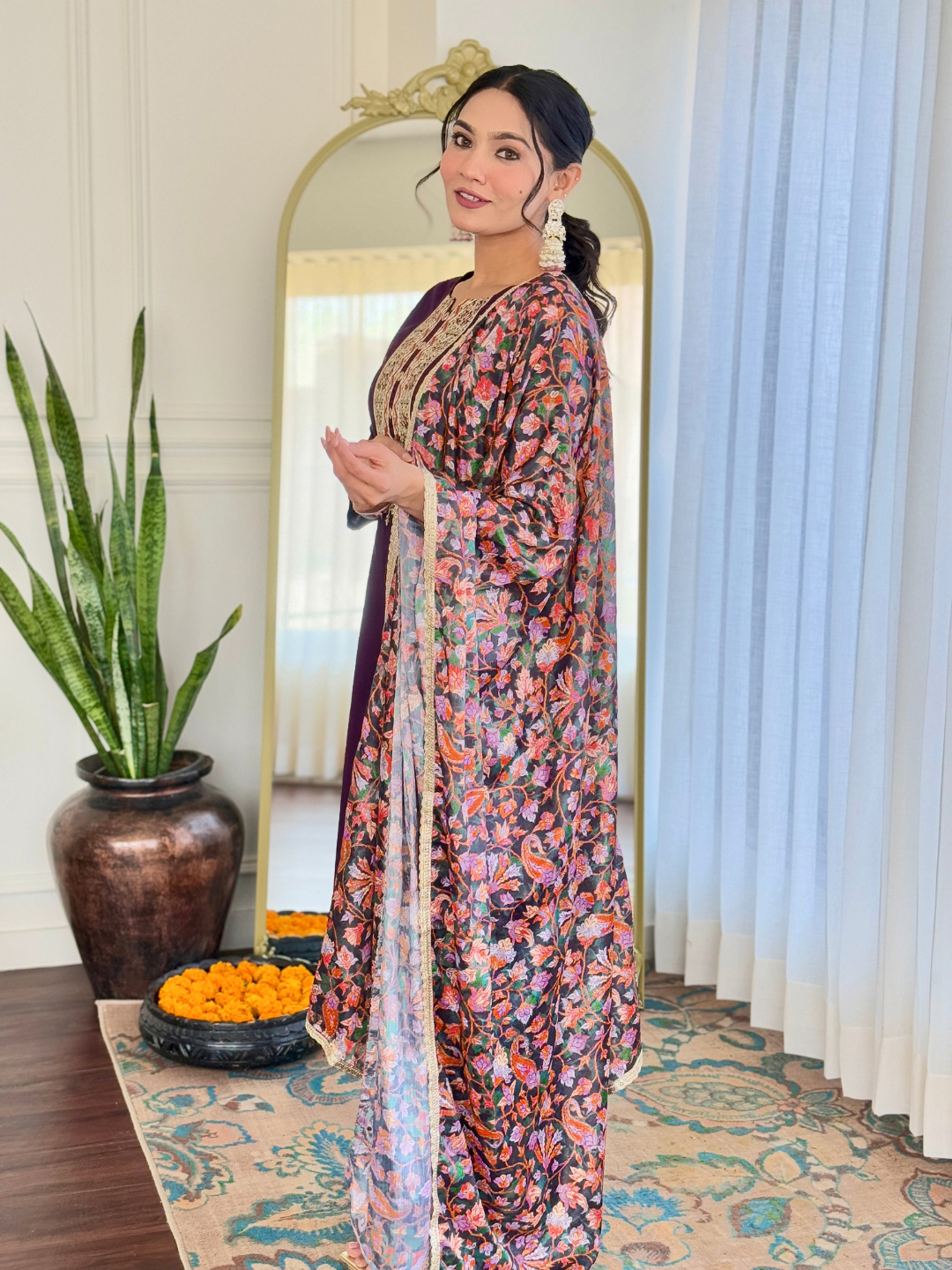 Wine Color Rayon Fabric Beautiful Festive Wear Readymade Kurta Set