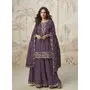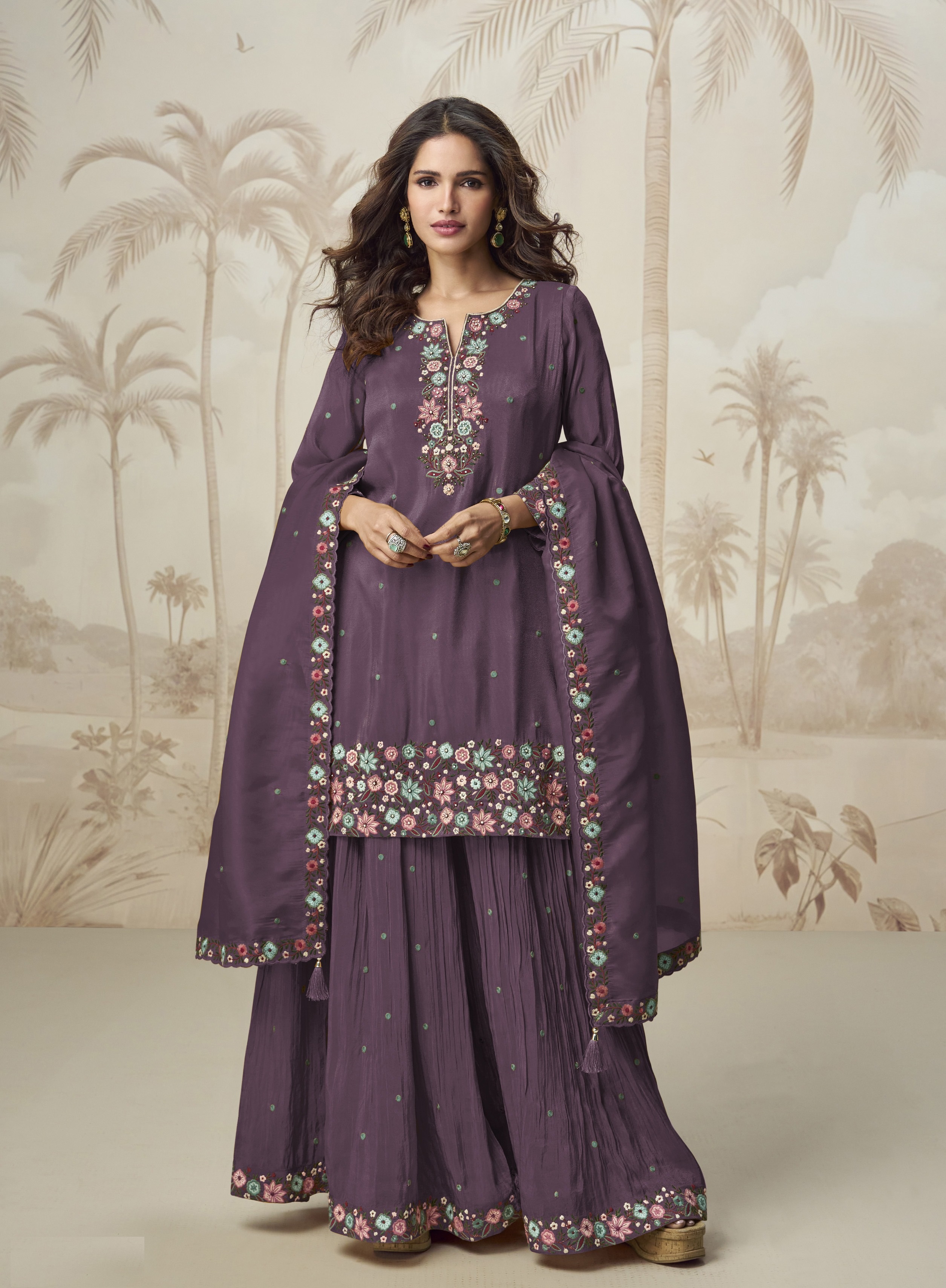 Wine Color Roman Simar Fabric Heavy Embroidered Palazzo Dress