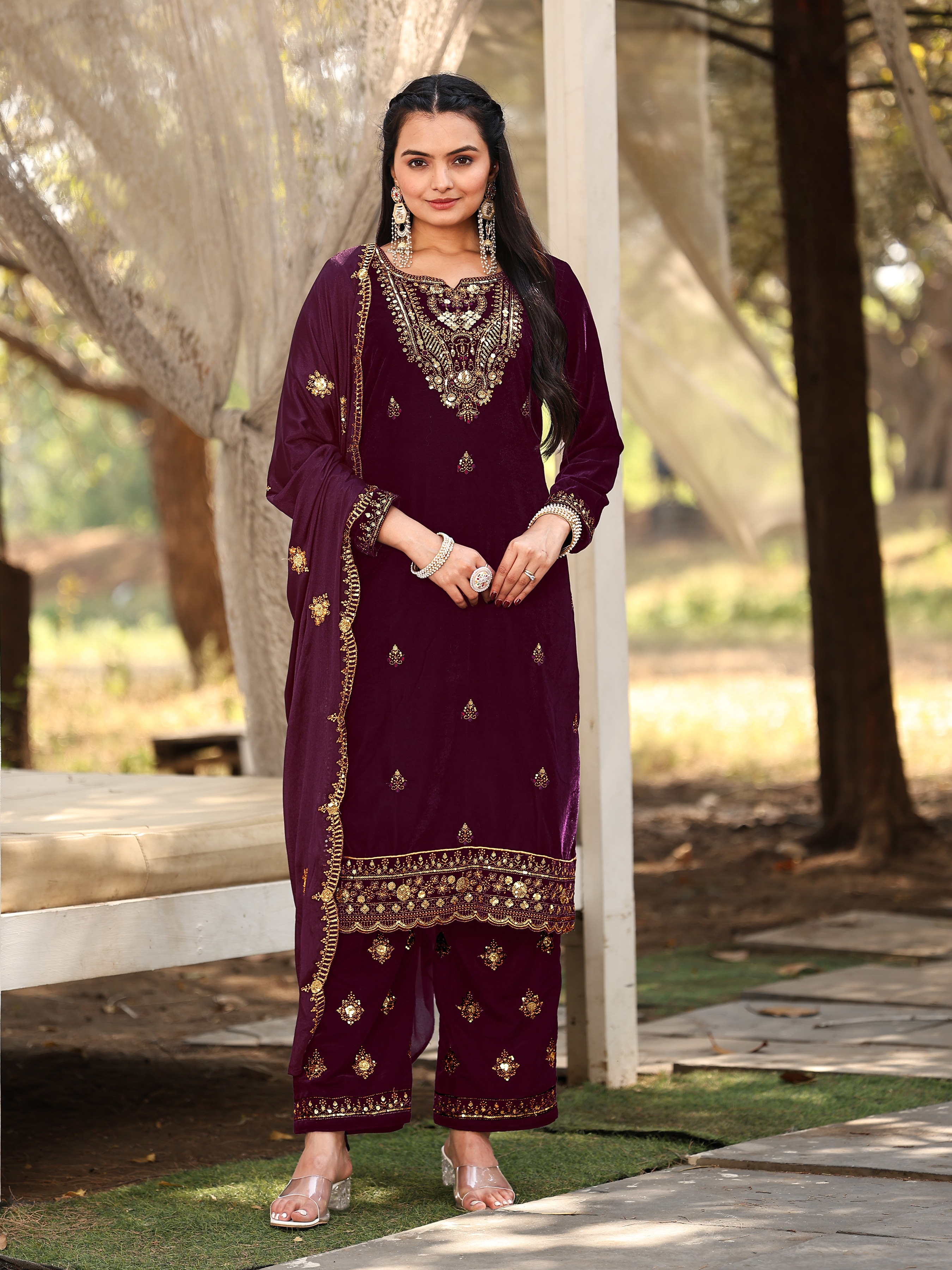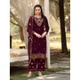 Wine Color Sophesticated Designer Embroidered Velvet Suit