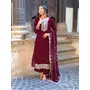 Wine Color Vichitra Silk Fabric Ceremonial Wear Embroidery Work Kurta Set