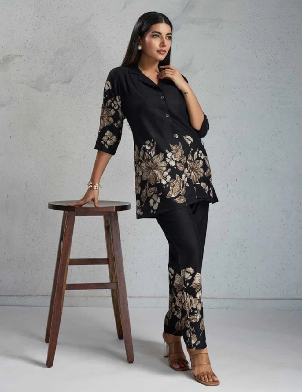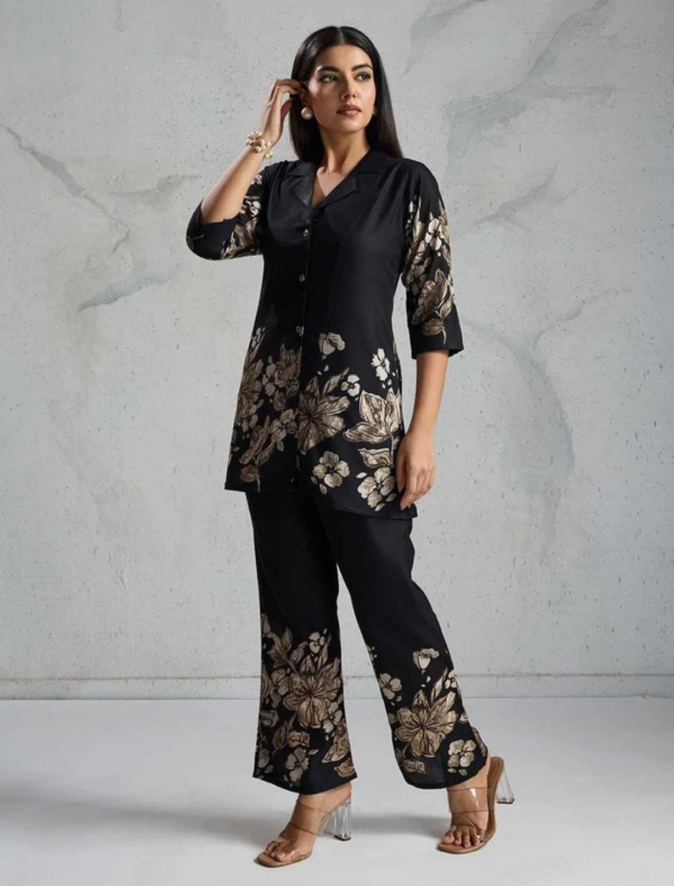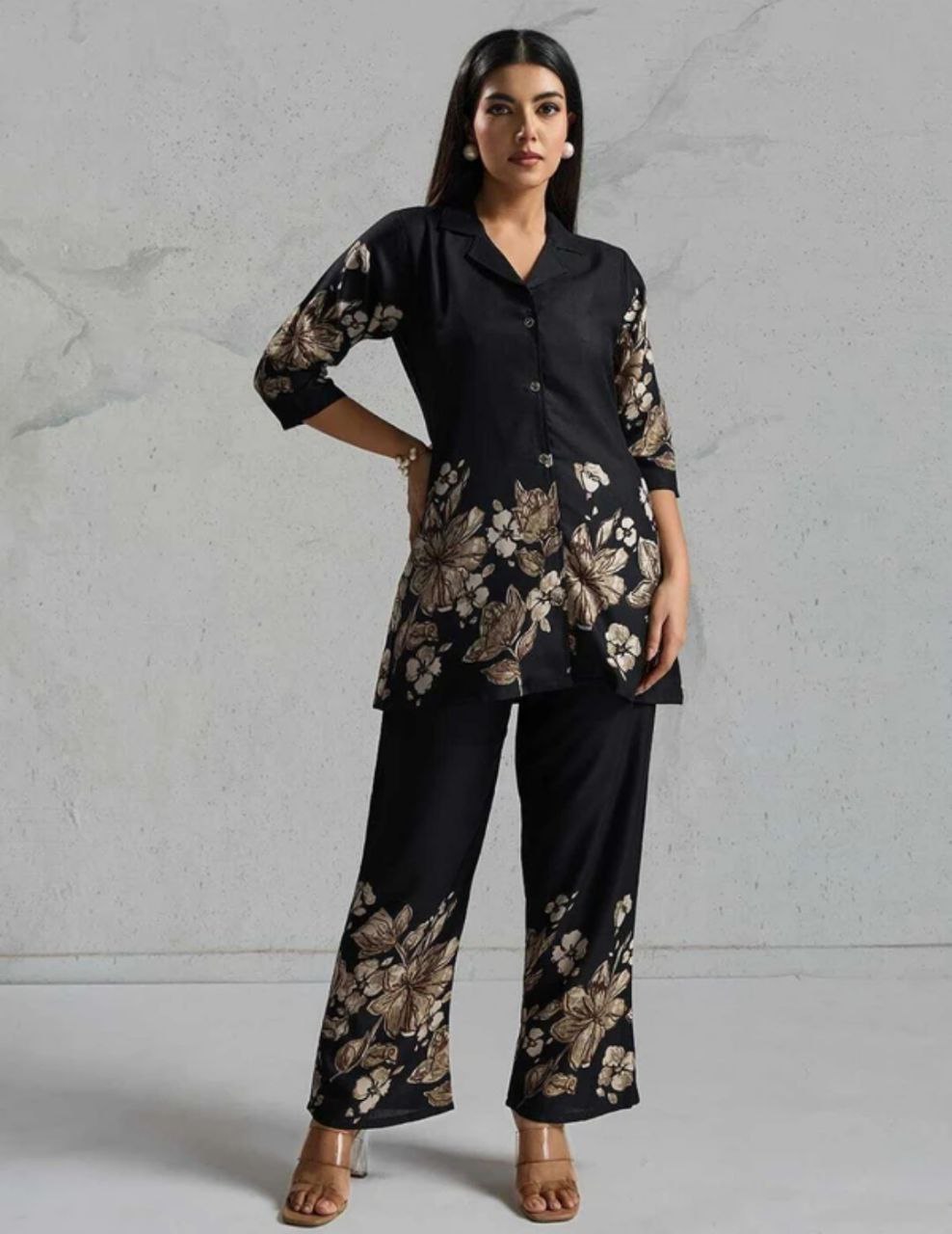 Women's Floral Printed Collar Neck Co-ords Set