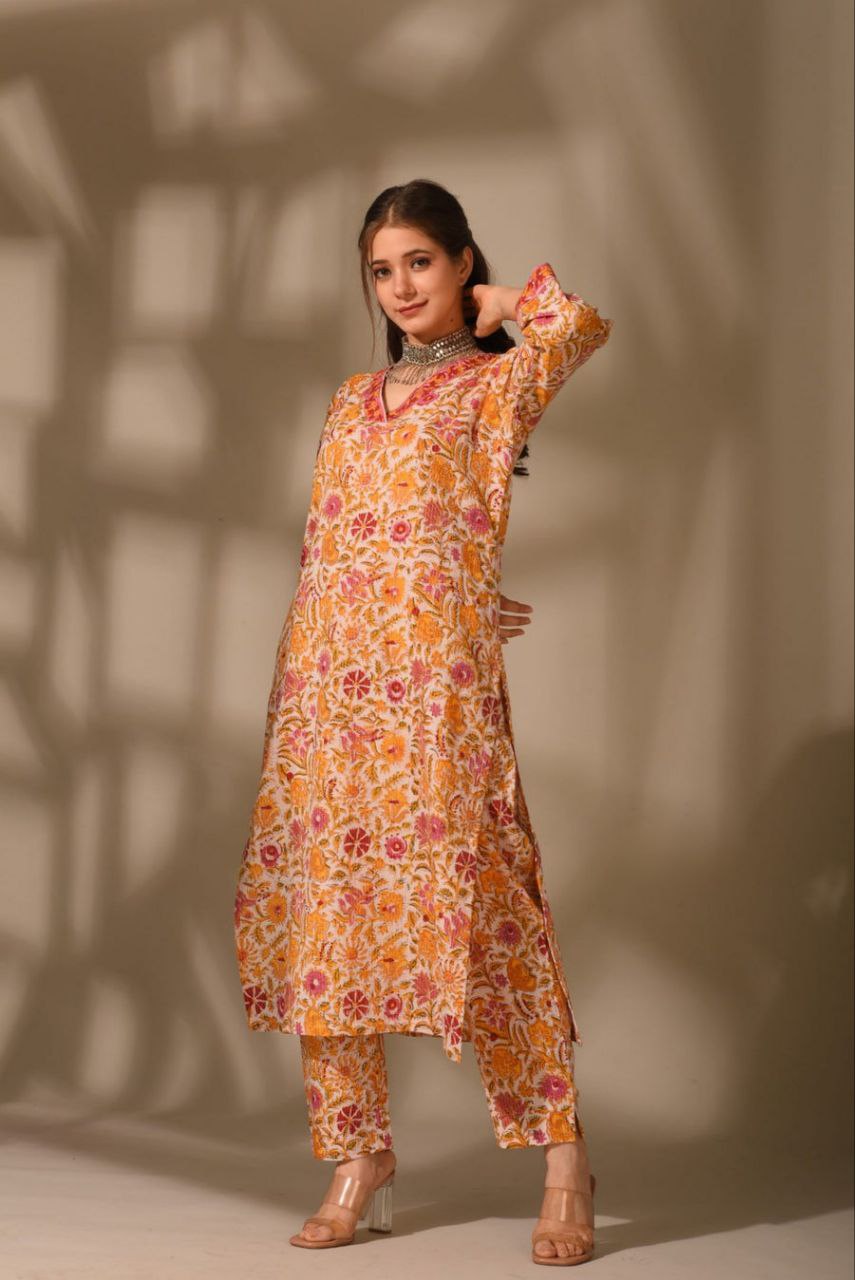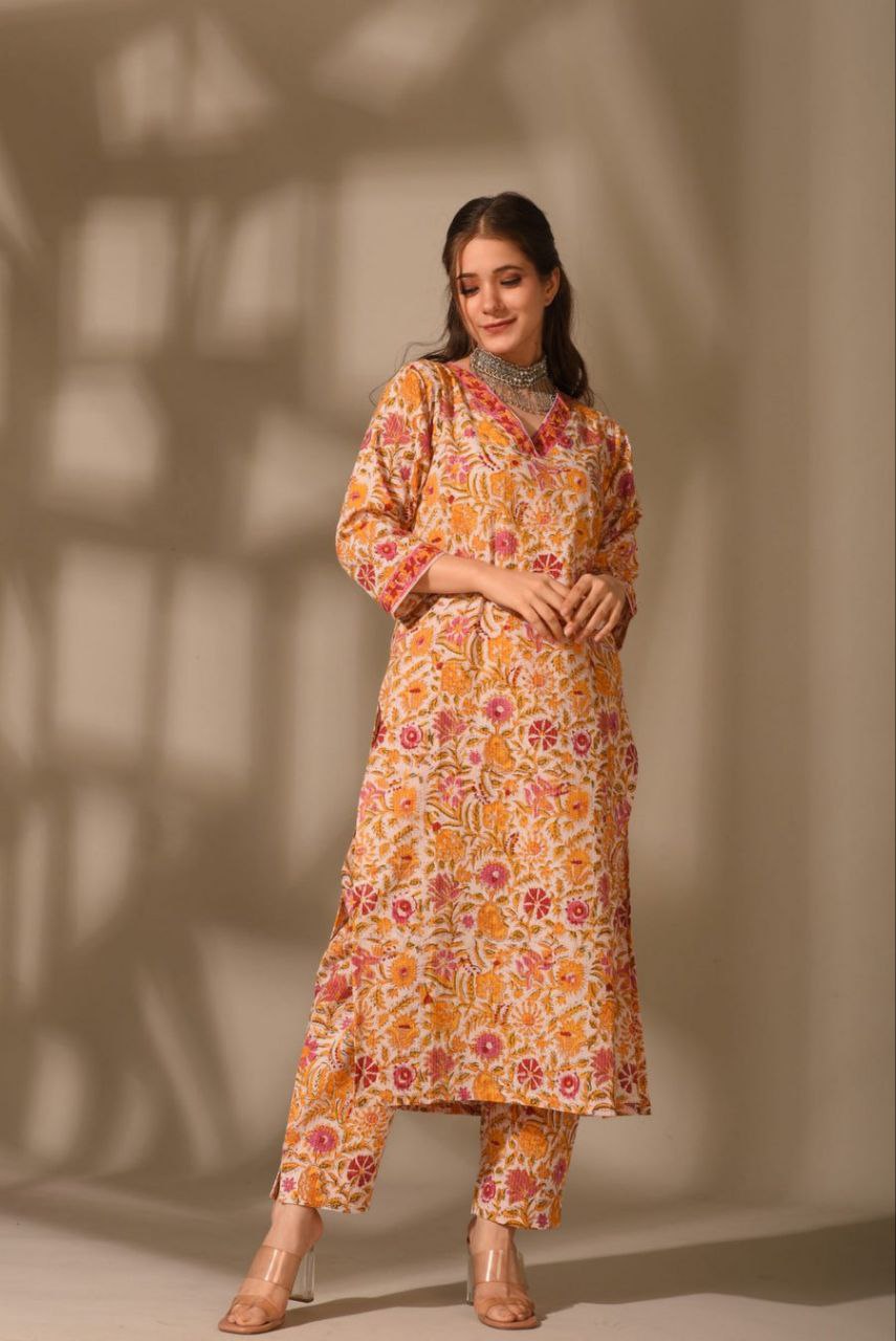 • This set includes: Kurta And Pant || Neck Style: V Neck.