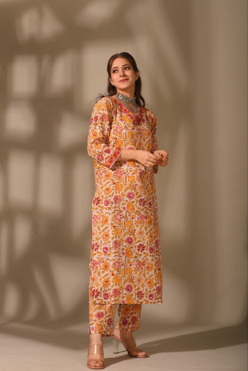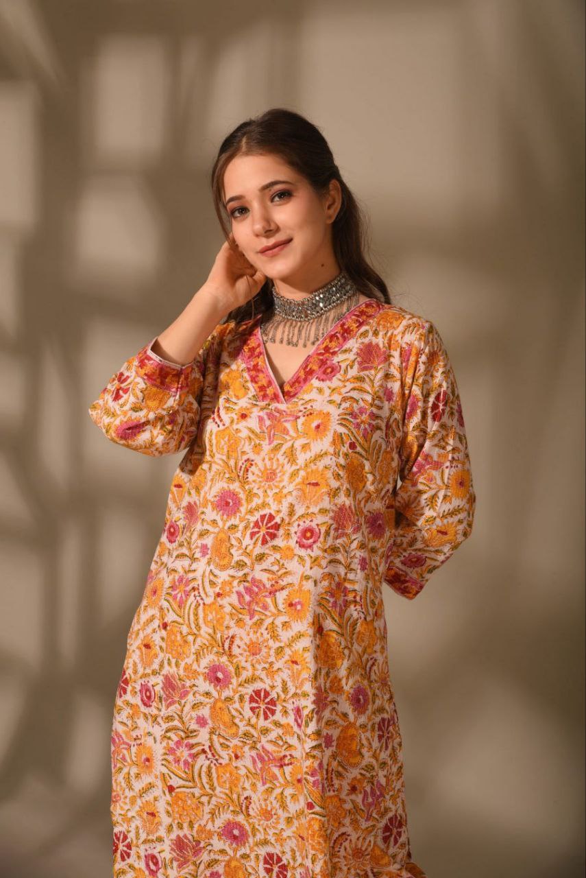 Customer Will Get 1 Kurti and Pant Set Which Made from Rayon Fabric, Kurti has 3/4 Sleeves and V Neck. There Is Multiple Design Print Which Gives Amazing Look To This Kurta Set. This Kurta Set Is Perfect Match for Party Wear, Wedding Wear, Festival Wear, and Traditional Wear.