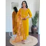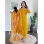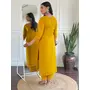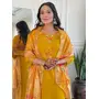 Yellow Color Beautiful Ceremonial Roman Silk Fabric Embroidered Festive Suit