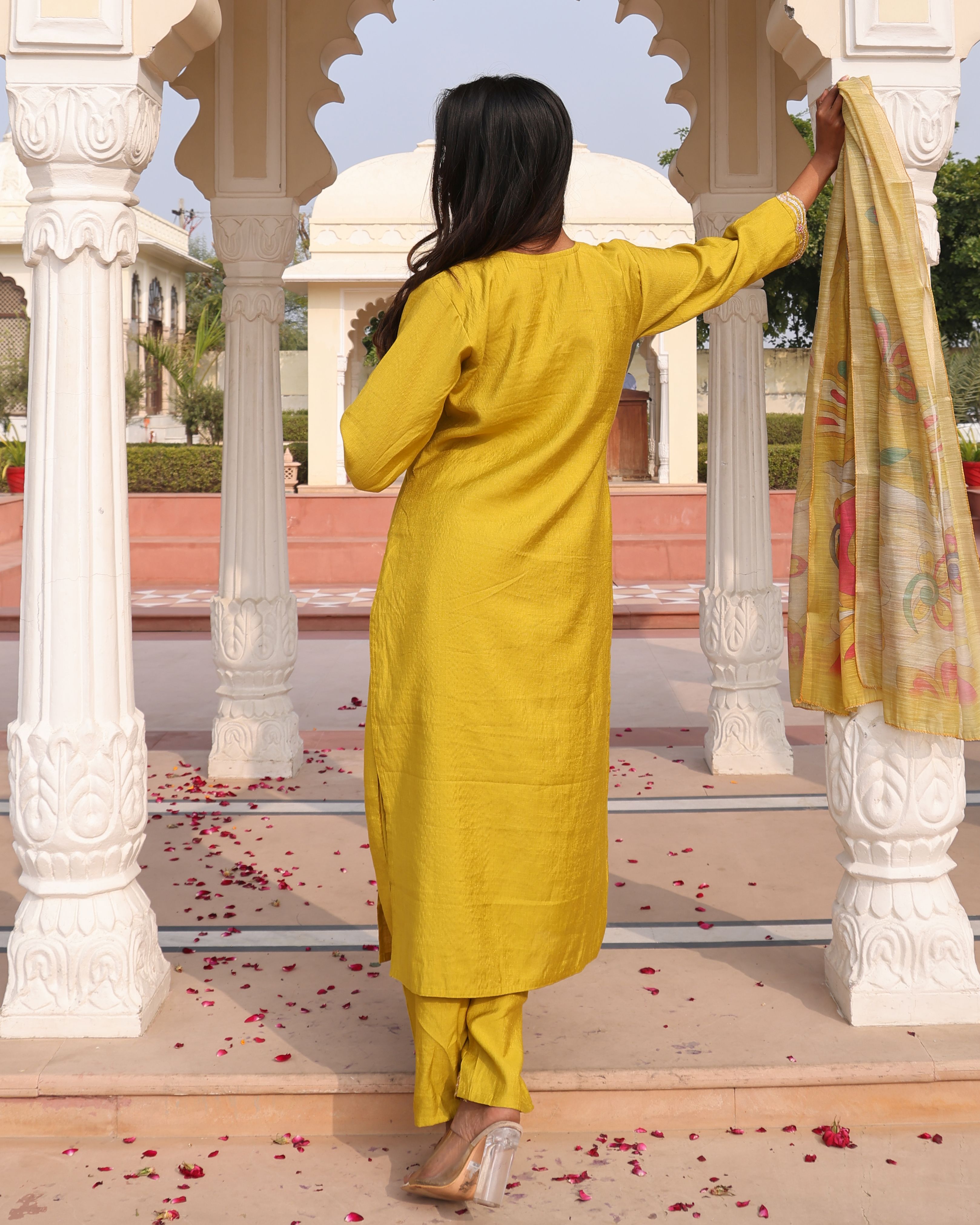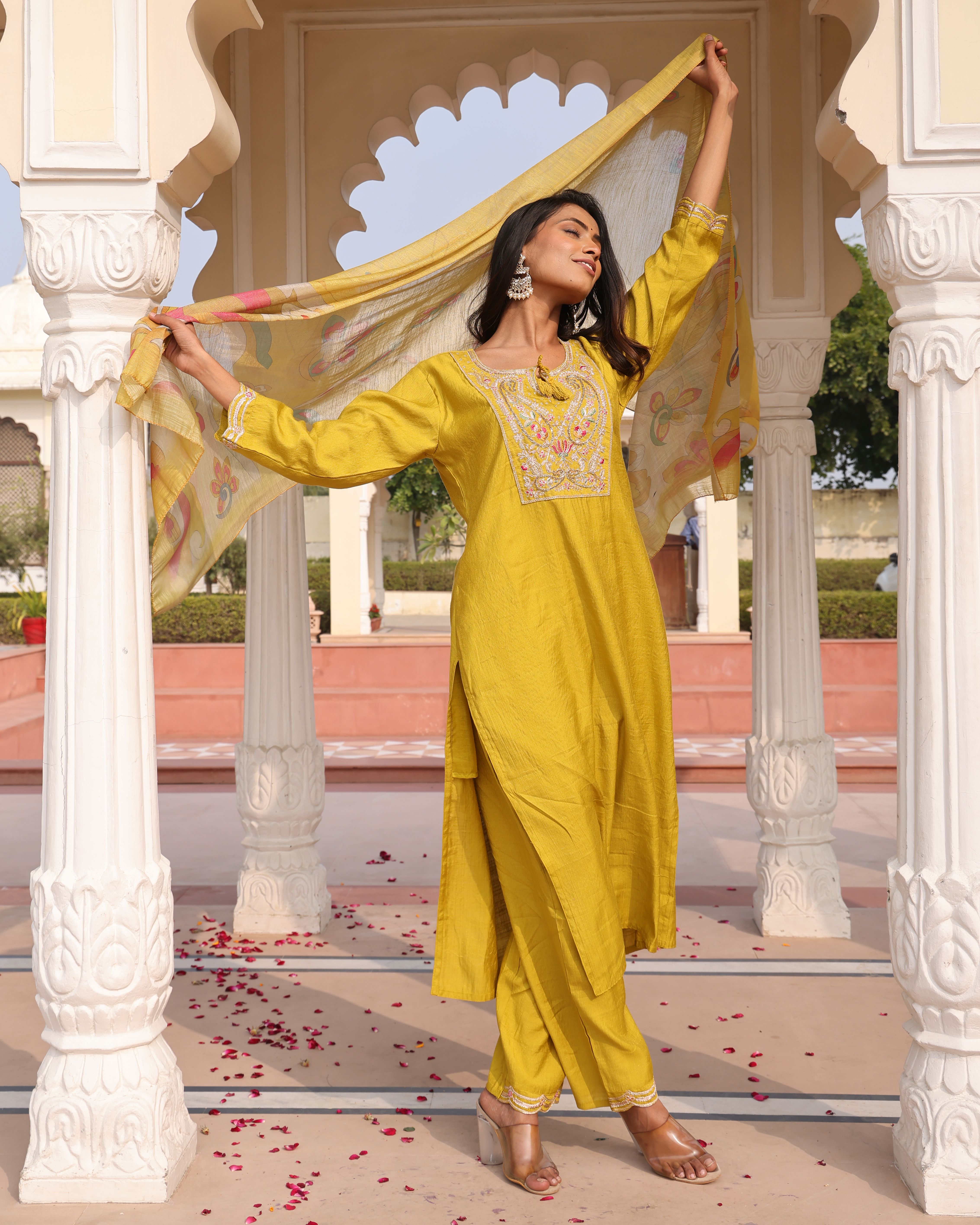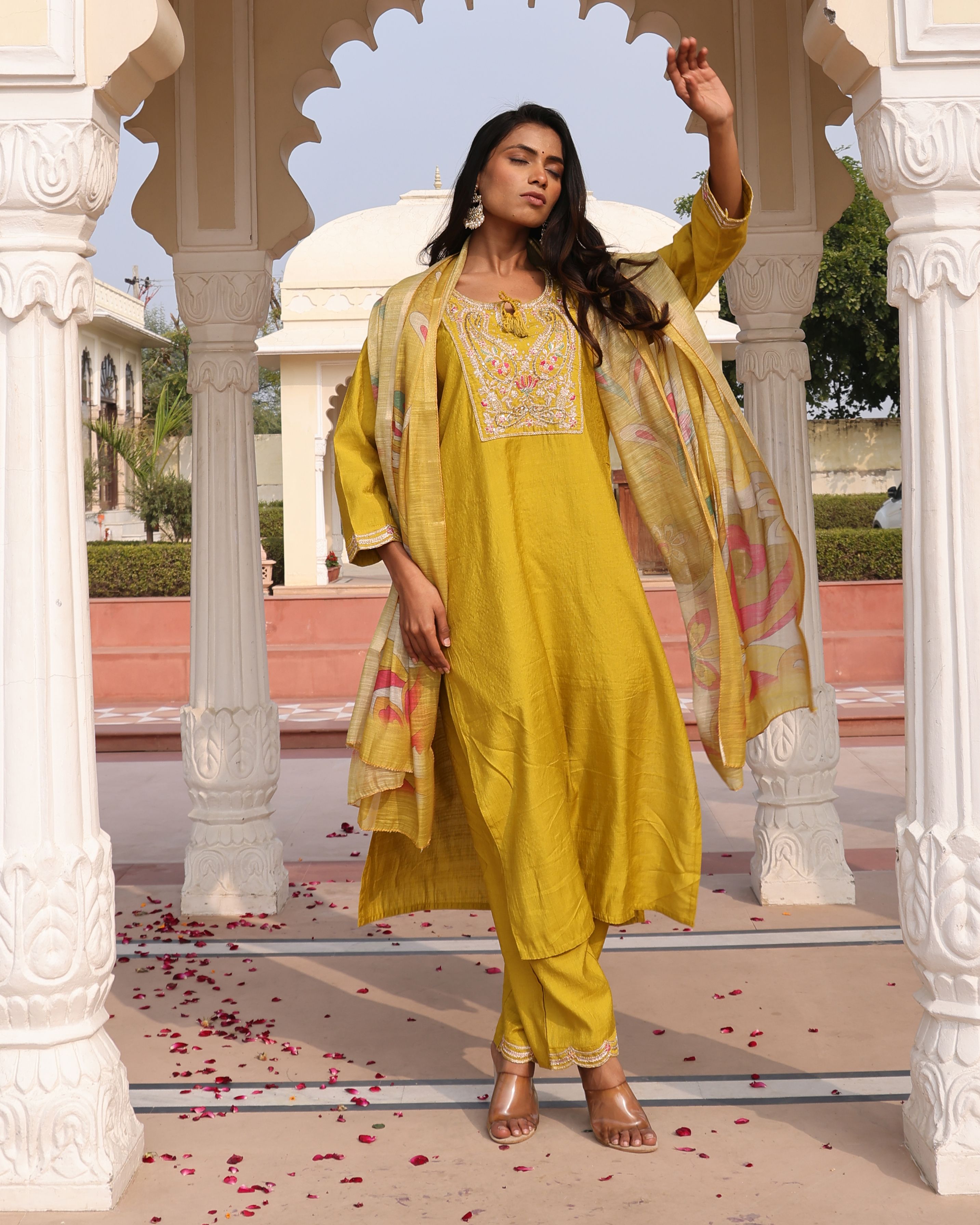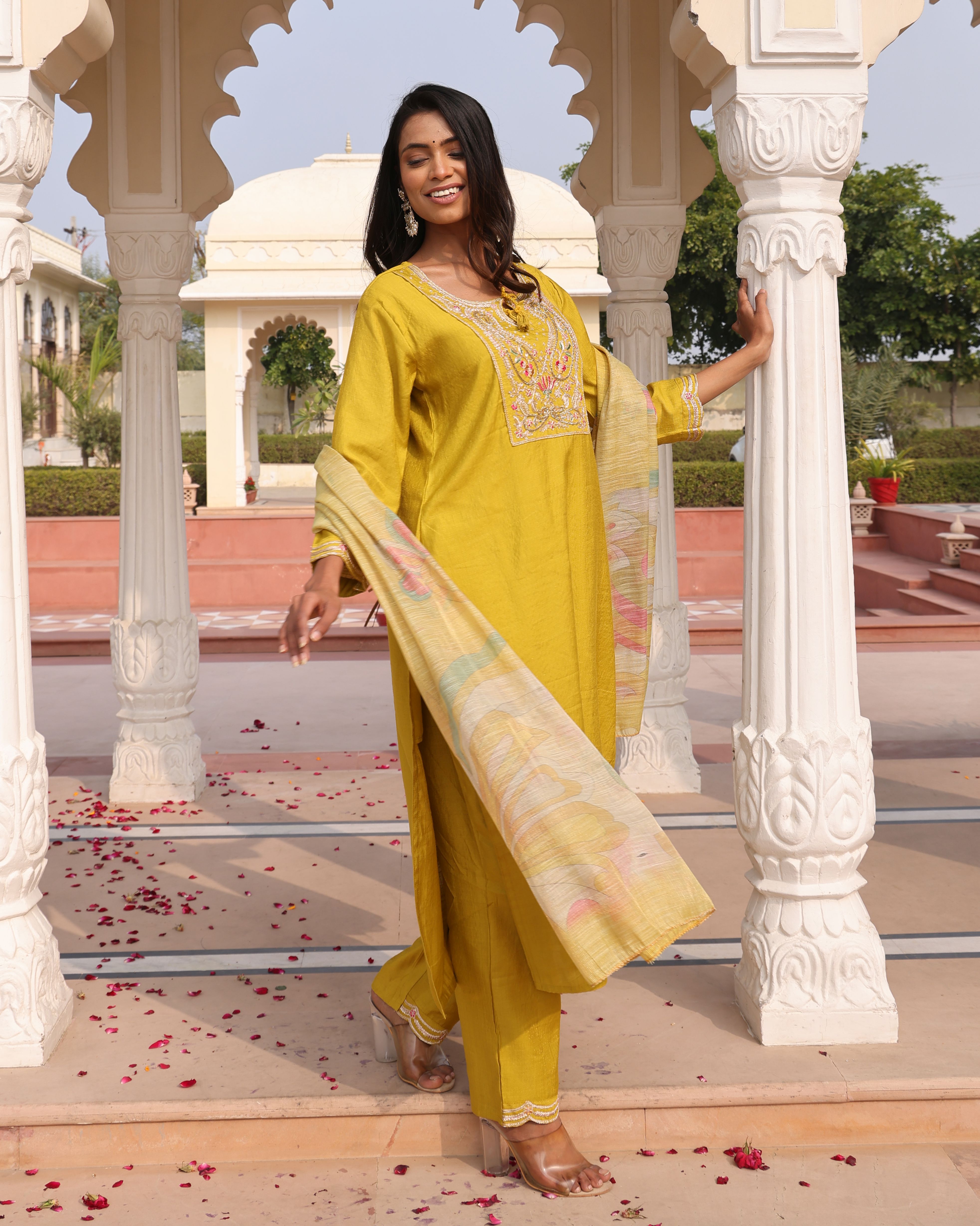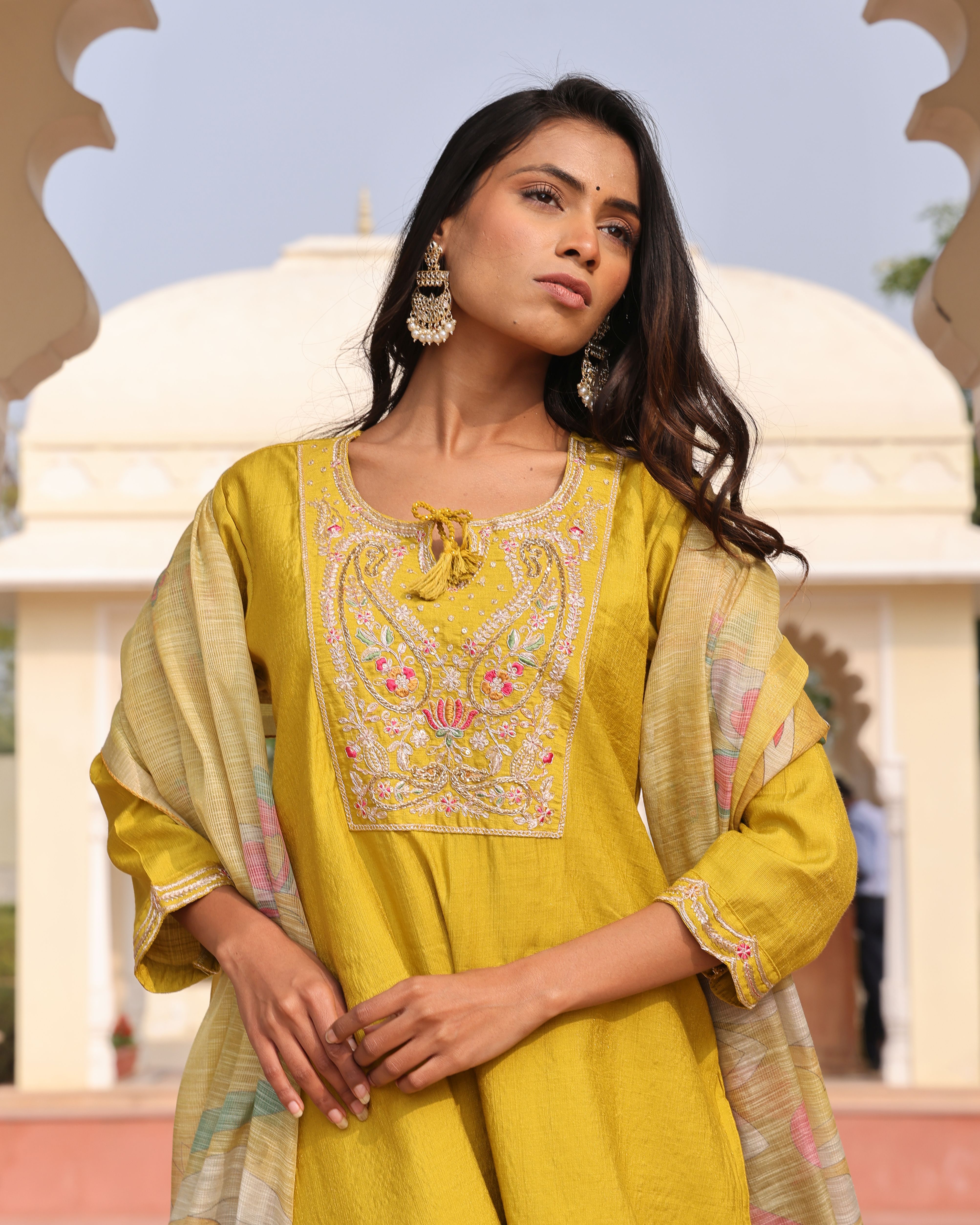 Yellow Color Cotton Silk Fabric Designer Embroidered Heavy Ceremonial Wear Salwar Kameez