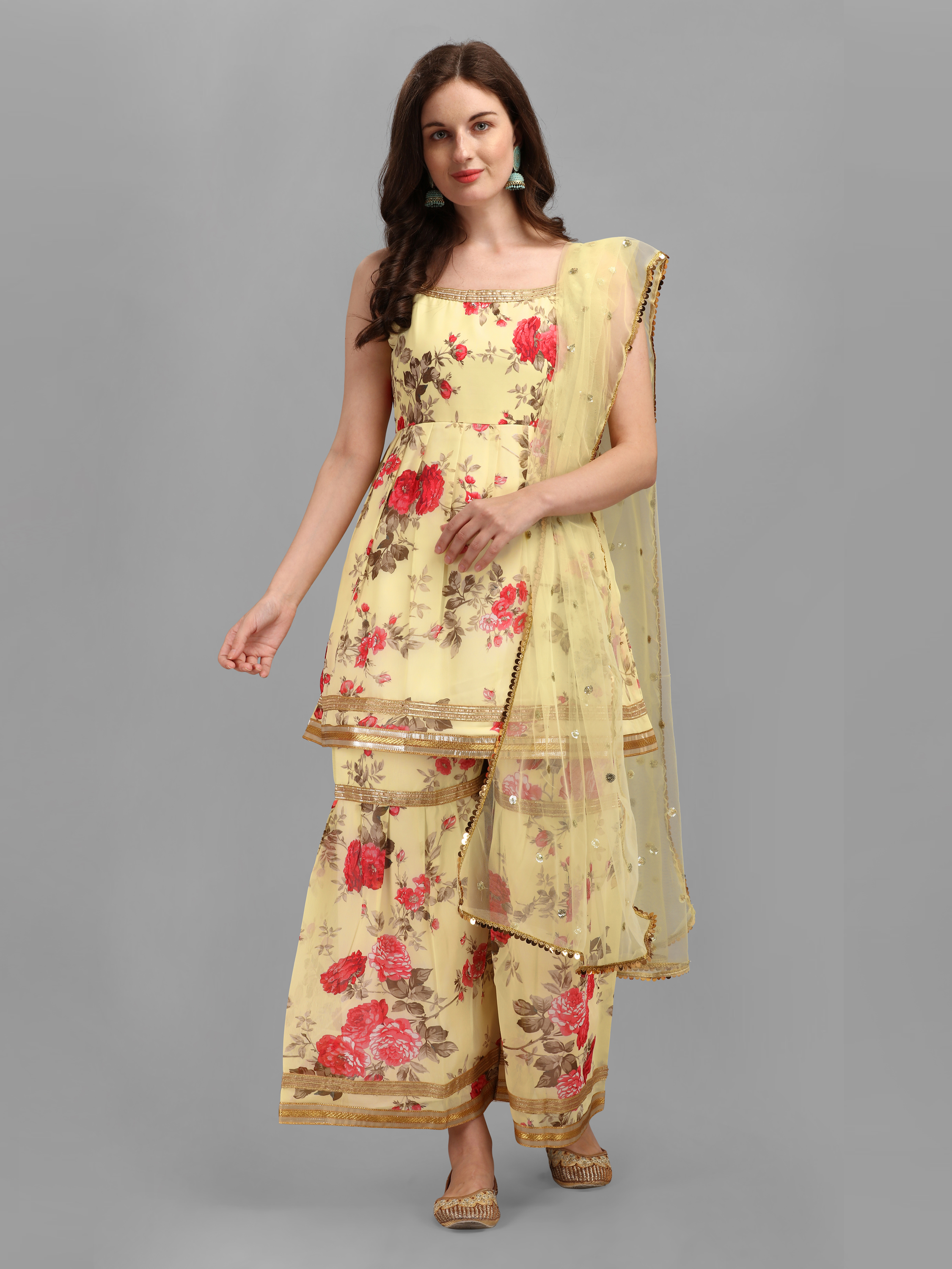 Yellow Color Georgette Fabric Ethnic Ceremonial Sophisticated Girlie Kurta Set