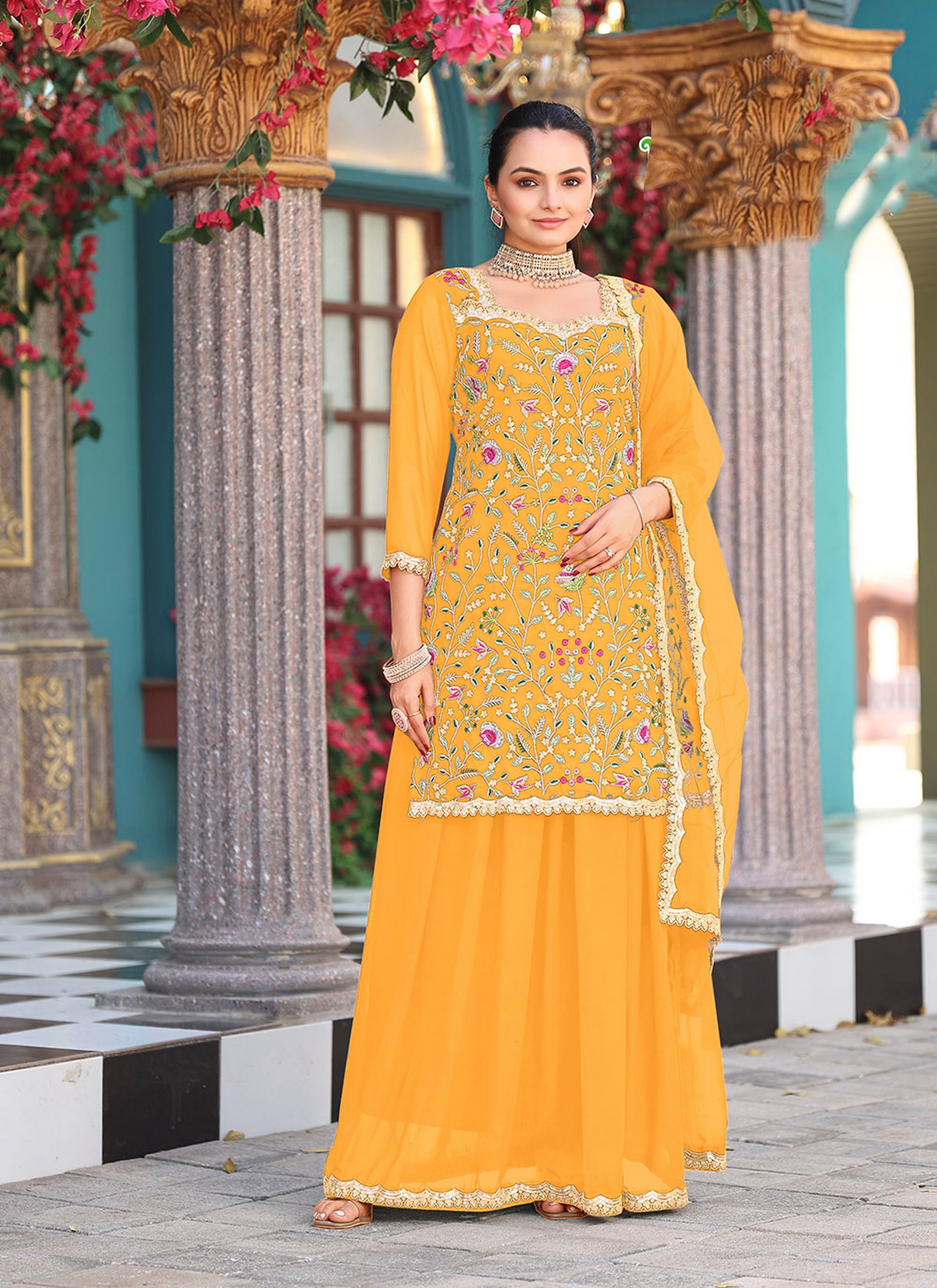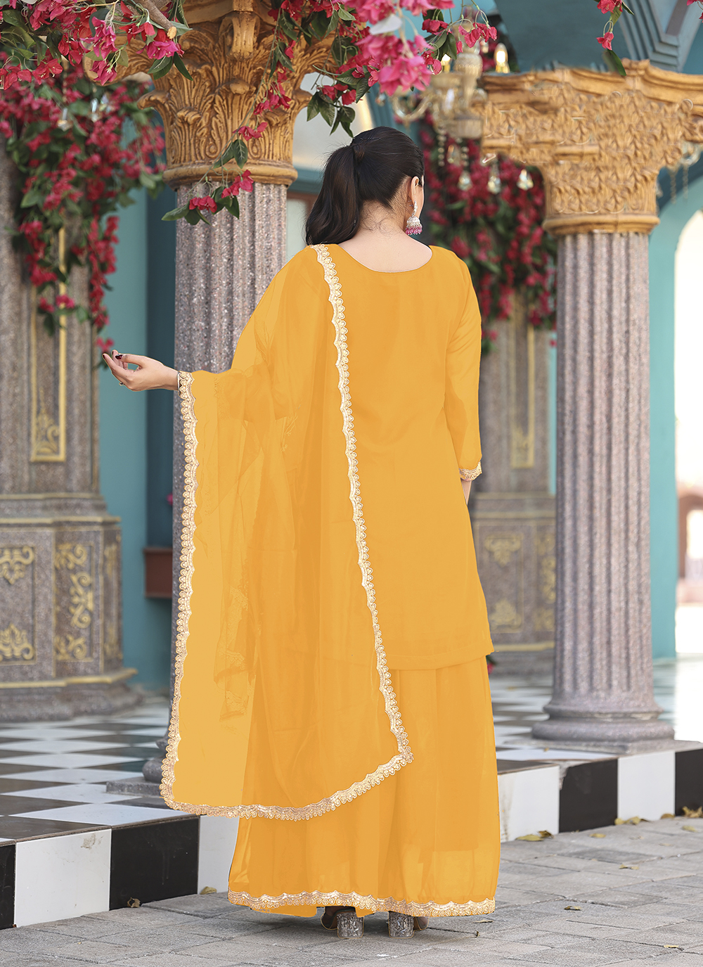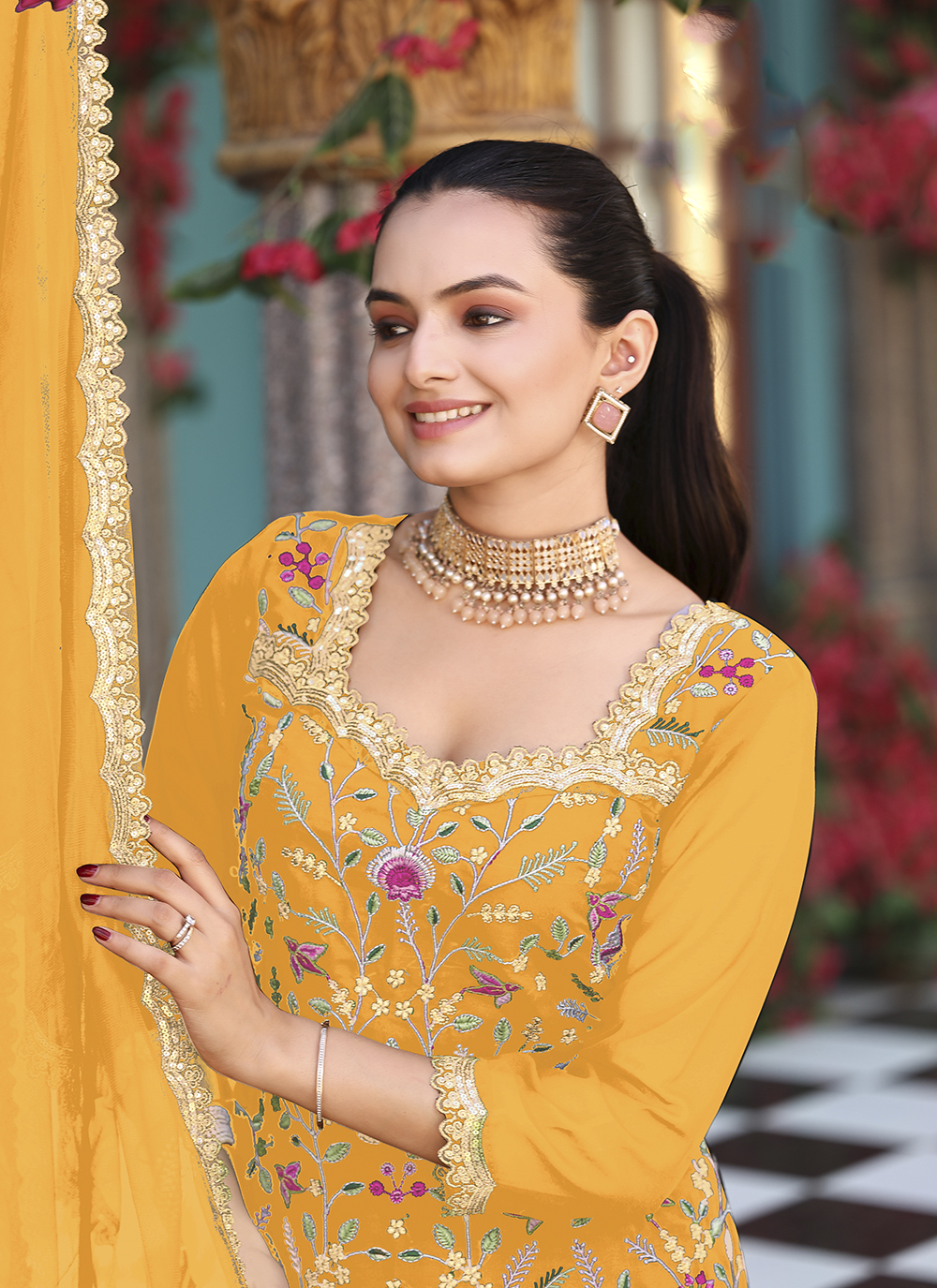 Yellow Color Graceful Heavy Embroidered Palazzo Dress For Wedding Looks