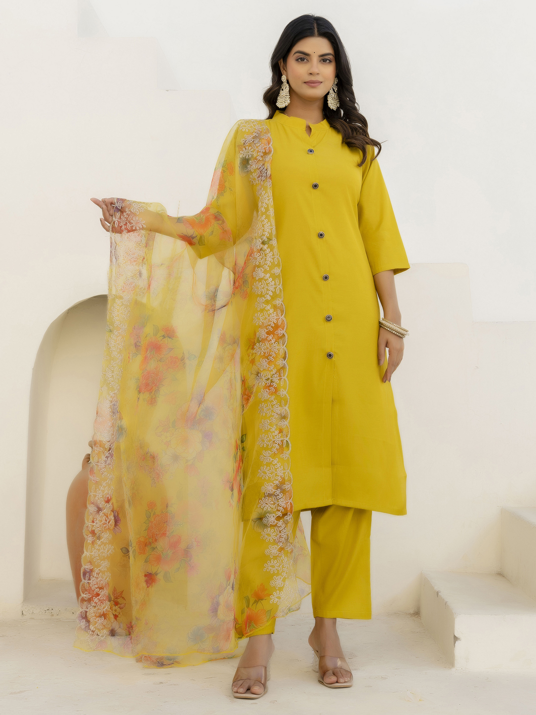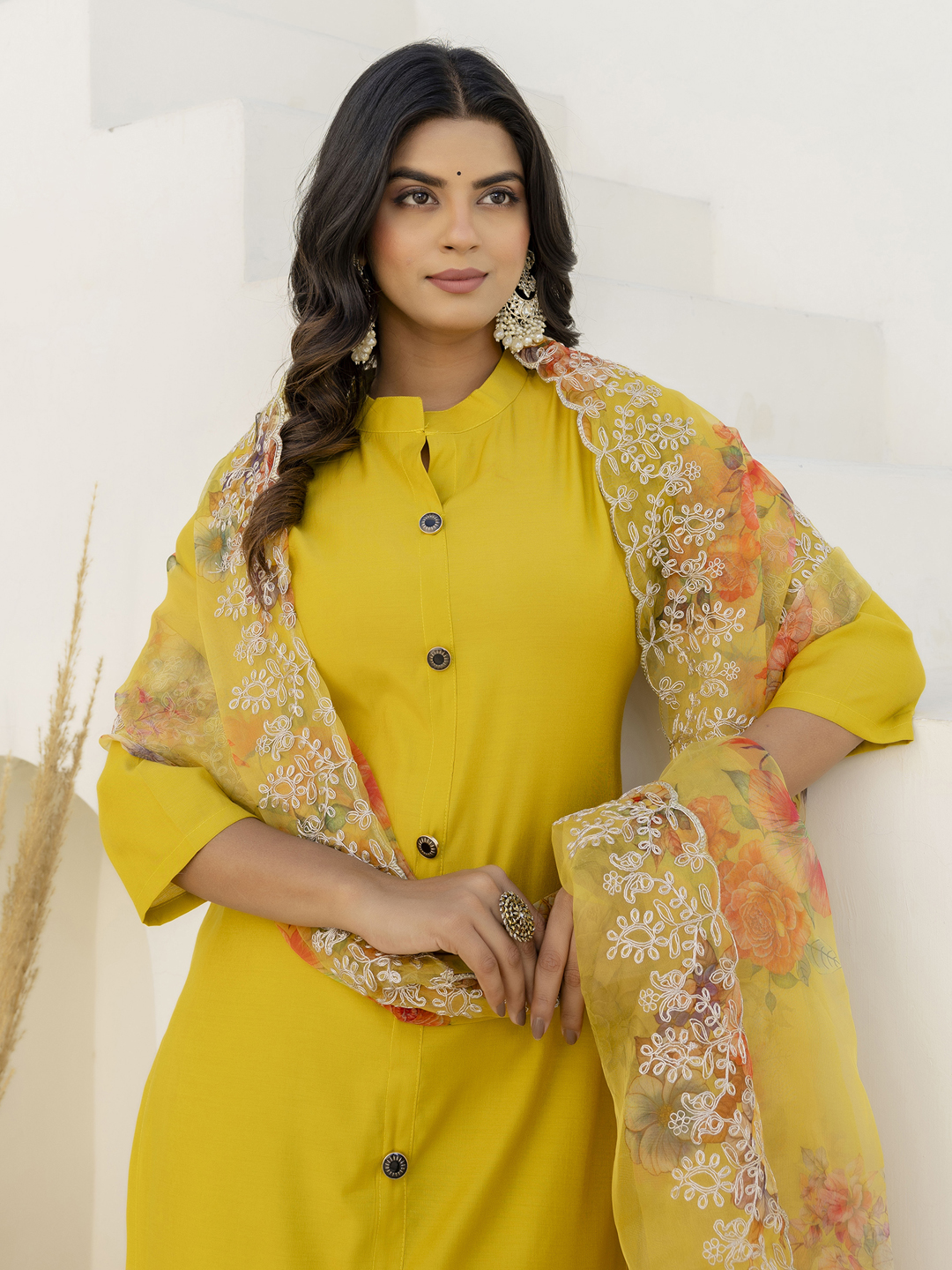 Yellow Color Shimmer Silk Fabric Designer Embroidery Work Formally Ethnic Readymade Kurta Set