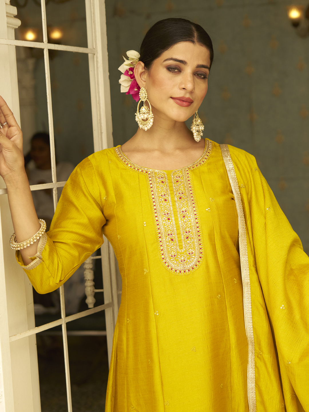 Yellow Color Silk Blend Designer Embroidery Work Heavy Looks Salwar Kameez