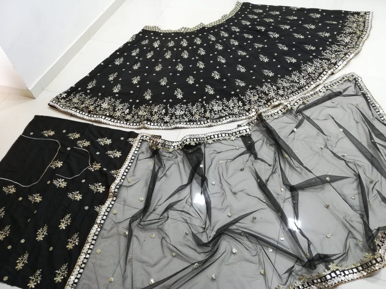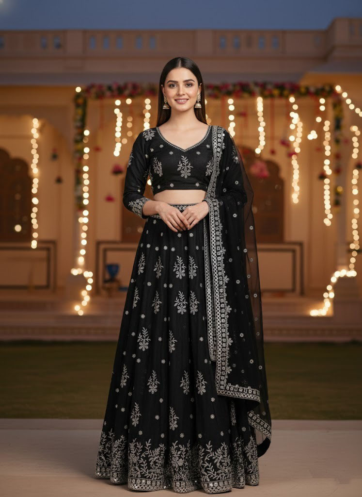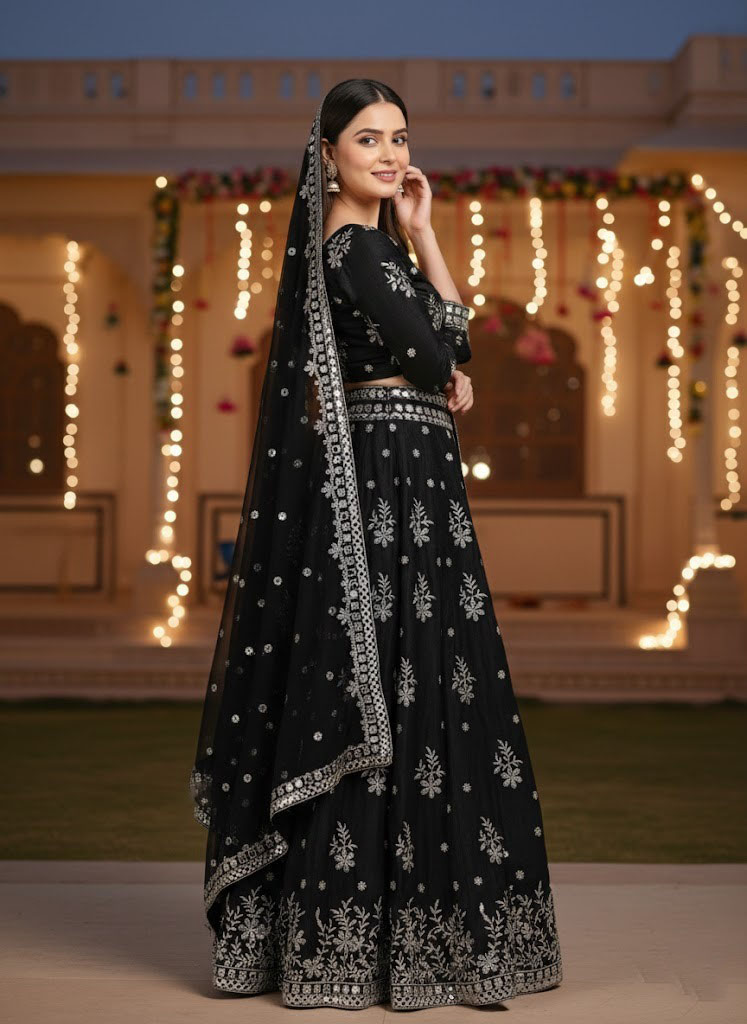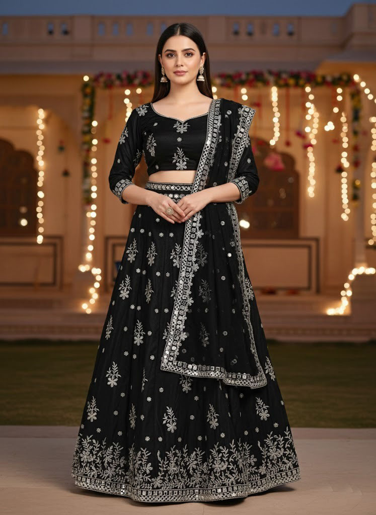 LEHENGA(BOTTOM)FABRIC:- FRENCH SILK(ART SILK)INNER:- MICRO FABRICWORK:- PAPER MIRROR WORK IN BOTTOM LACE BORDER AND 3MM SEQUINS WITH JARI EMBROIDERY WORK IN LEHENGA KALISTITCH:- SEMI STITCHED WITH CANCAN AND CANVASSIZE:- 42 HEIGHT AND 42 WAIST FLAIR:- 3.20 TO 3.50 METER CHOLI(TOP):-FABRIC:- FRENCH SILK(ART SILK)SIZE:- 0.80 METERWORK SIZE:- 20H X 14W BLOUSE, , , 20H X 14W BACK, , , 12H X 13 SLEEVES, , , WORK:- 3MM SEQUINS WITH JARI EMBROIDERY WORK STITCH:- UN STITCHED FABRICDUPATTA:-FABRIC:- NETWORK:- 3MM SEQUINS WORK IN DUPATTA AND PAPER MIRROR WITH JARI EMBROIDERY WORK IN LACE BORDER. SIZE:- 2.25 METER DUPATTASTITCH:- FULL STITCHEDADDITIONALWASH CARE: - DRY CLEAN ONLYCOLOR: - PRODUCT COLOR MAY SLIGHTLY VARY DUE TO PHOTOGRAPHIC LIGHTNING SOURCES OR YOUR DEVICE DISPLAY SETTINGSTHESE ARE MADE TO ORDER DESIGNER STYLES, HENCE EXPECT A SLIGHT VARIATION FROM THE IMAGE DISPLAYEDIN THE BOX 1 PIECE LEHENGA 1 PIECE DUPATTA 1 PIECE BLOUSE FABRIC.