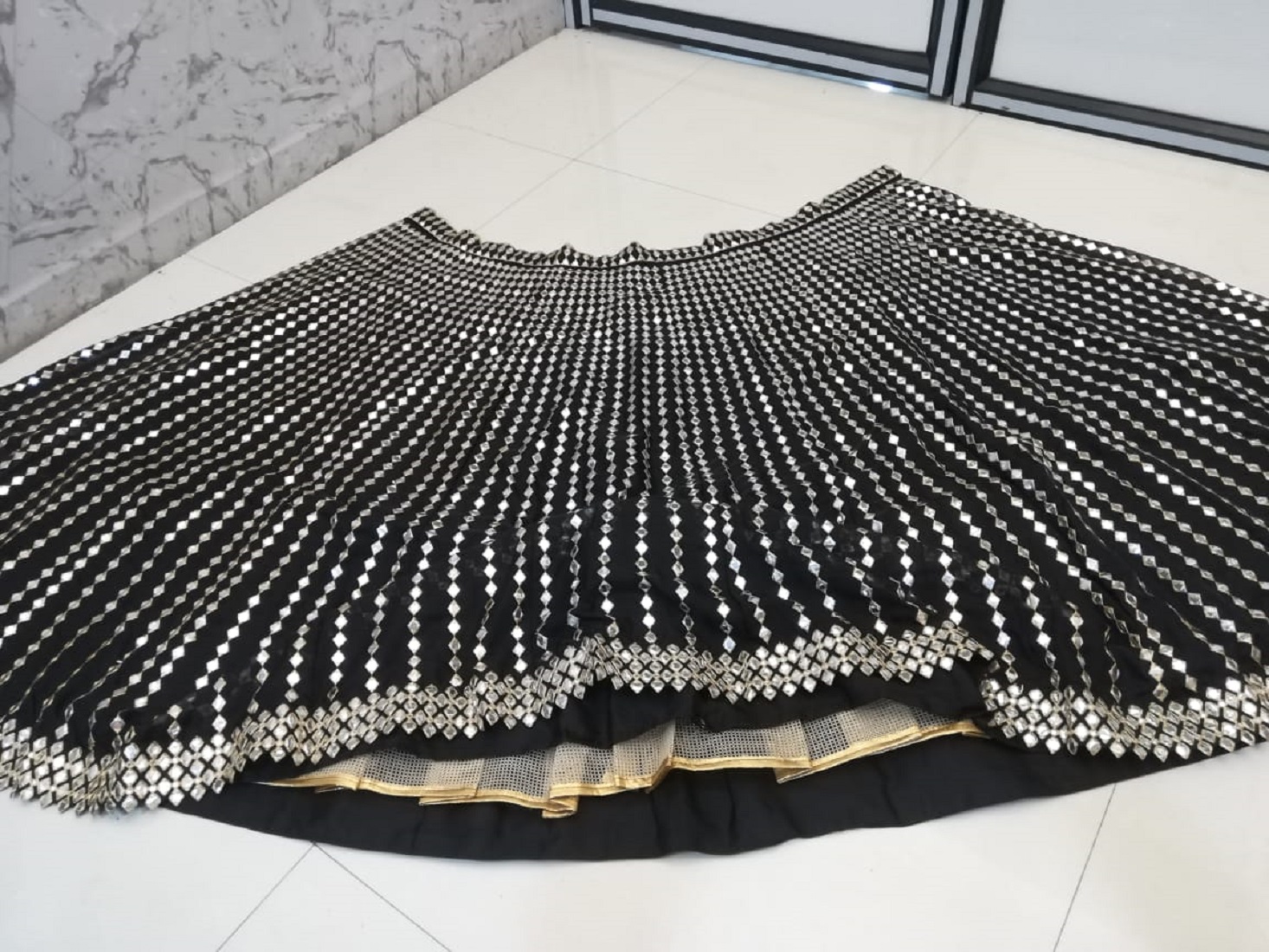 LEHENGA(BOTTOM): -FABRIC: - ORGANZA SILK FABRICINNER: - MICRO FABRICWORK: - PAPER MIRROR WITH ZARI EMBROIDERY WORKSTITCH: - SEMI STITCHED WITH CANCAN AND CANVASSIZE: - 42 HEIGHT AND 42 WAISTFLAIR: - 3.50 METERS CHOLI(TOP): -FABRIC: - ORGANZA SILK FABRICWORK SIZE: - 1.10 METER EMBROIDERY WORK FABRICWORK: - PAPER MIRROR WITH ZARI EMBROIDERY WORKSTITCH: - UN STITCHED FABRICDUPATTA: -FABRIC: - ORGANZA SILK FABRICWORK: - PAPER MIRROR WITH ZARI EMBROIDERY LACE BORDER WORKSIZE: - 2.25 METER DUPATTASTITCH: - FULL STITCHEDADDITIONALWASH CARE: - DRY CLEAN ONLYCOLOR: - PRODUCT COLOR MAY SLIGHTLY VARY DUE TO PHOTOGRAPHIC LIGHTNING SOURCES OR YOUR DEVICE DISPLAY SETTINGSTHESE ARE MADE TO ORDER DESIGNER STYLES, HENCE EXPECT A SLIGHT VARIATION FROM THE IMAGE DISPLAYEDIN THE BOX 1 PIECE LEHENGA 1 PIECE DUPATTA 1 PIECE BLOUSE FABRIC (1 SET OF HAND MADE TASSELS)ALTERNATIVEHANDMADE TASSELS MAY DIFFER FROM THE PHOTOS AND VIDEOS. TASSELS WILL BE AVAILABLE AS LONG AS THE CURRENT STOCK LASTS. ALTERNATIVELY, NEW STOCK MAY TAKE SOME TIME TO ARRIVE. WE ARE NOT STRICTLY BOUND TO PROVIDE TASSELS.