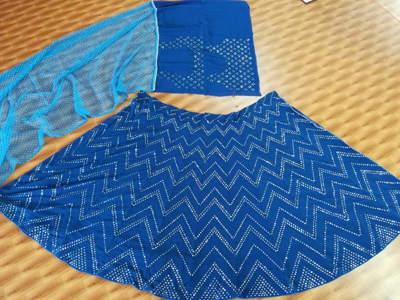 LEHENGA(BOTTOM)FABRIC: - FAUX GEORGETTEINNER: - MICRO FABRICWORK: - 3MM SEQUINS WITH THREAD EMBROIDERY WORKSTITCH: - SEMISTITCHED (WITH CANVAS)SIZE: - 42HEIGHT AND 42WAISTFLAIR: - 3 METERCHOLI(TOP)FABRIC: - FAUX GEORGETTEINNER: - MICROSIZE: - 0.80 METER FABRICWORK: - 3MM SEQUINS WITH THREAD EMBROIDERY WORKSTITCH: - UNSTITCHED FABRICEMBROIDERY WORK SIZE: - FRONT HEIGHT-14 WIDTH-18, , , BACK HEIGHT-14 WIDTH-18, , , DUPATTAFABRIC: - NETWORK: - DUE DROP WORKSIZE: - 2.25 METER DUPATTASTITCH: - FULL STITCHEDADDITIONALWASH CARE: - DRY CLEAN ONLYCOLOR: - PRODUCT COLOR MAY SLIGHTLY VARY DUE TO PHOTOGRAPHIC LIGHTNING SOURCES OR YOUR DEVICE DISPLAY SETTINGSTHESE ARE MADE TO ORDER DESIGNER STYLES, HENCE EXPECT A SLIGHT VARIATION FROM THE IMAGE DISPLAYED.