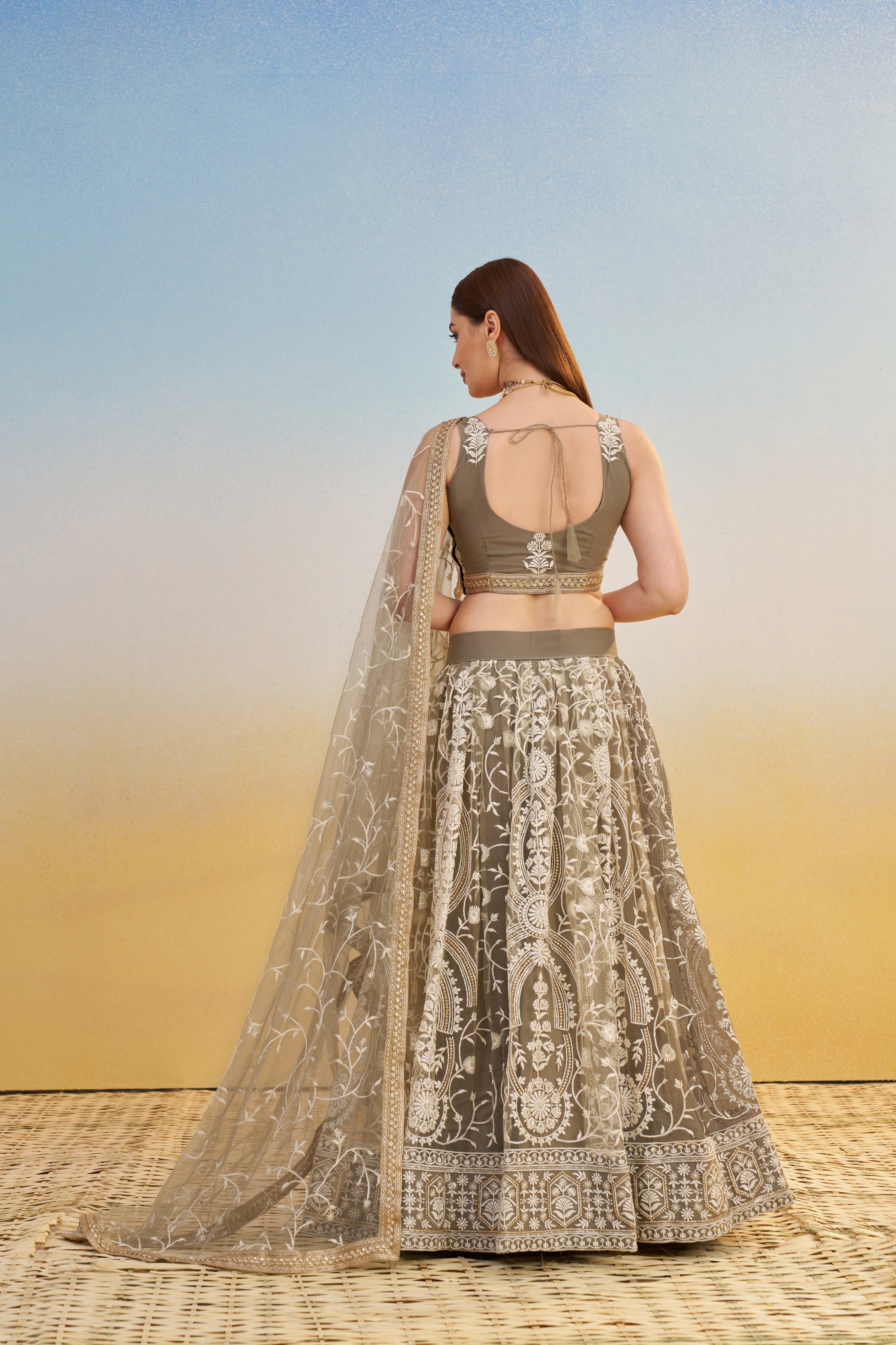 • Includes lehenga (skirt), matching choli (blouse) and dupatta for a coordinated ethnic look.