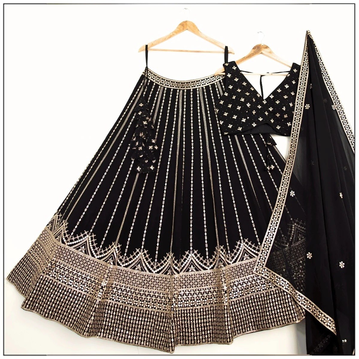 Designer Lehenga Choli Set with Dupatta Faux Georgette Fabric 3Mm+5Mm Sequins With Jari Embroidery Work for Women – Black Color
