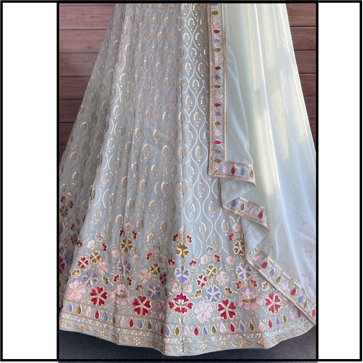LEHENGA(BOTTOM), FABRIC:- FAUX GEORGETTE, FLAIR:- 3.5 METER, INNER:- MICRO, WORK:- THREAD AND SEQUENCE EMBROIDERY WORK, STITCH:- SEMI STITCHED (WITH PREMUIM CANCAN AND CANVAS), SIZE:- 42HEIGHT AND 42 TO 44 WAIST, CHOLI(TOP), FABRIC:- FAUX GEORGETTE, BLOUSE SIZE:- 1 METER FABRIC (BUST SIZE UPTO 46 INCHES), WORK:- THREAD AND SEQUENCE EMBROIDERY WORK, STITCH:- UN STITCHED FABRIC, (IT MAY HAVE MINOR DIFFERENCE IN WORK SIZE DUE TO STOCK CHANGES), DUPATTA, FABRIC:- FAUX GEORGETTE, WORK:- THREAD AND SEQUENCE EMBROIDERY WORK WITH LACE BORDER WORK, SIZE:- 2.50 METER DUPATTA, STITCH:- FULL STITCHED, ADDITIONAL, WASH CARE: - DRY CLEAN ONLY, COLOR: - PRODUCT COLOR MAY SLIGHTLY VARY DUE TO PHOTOGRAPHIC LIGHTNING SOURCES OR YOUR DEVICE DISPLAY SETTINGS, THESE ARE MADE TO ORDER DESIGNER STYLES, HENCE EXPECT A SLIGHT VARIATION FROM THE IMAGE DISPLAYED.