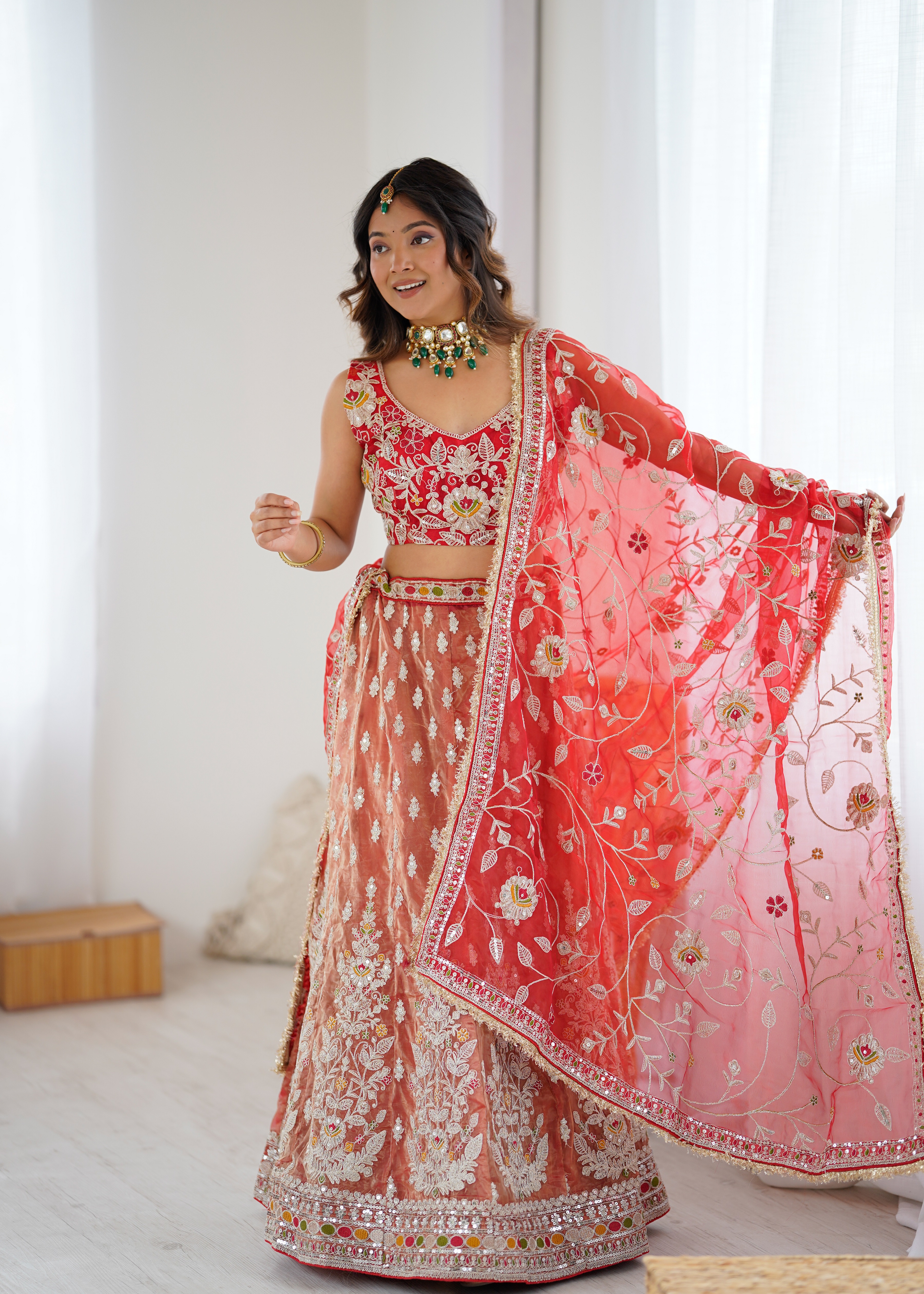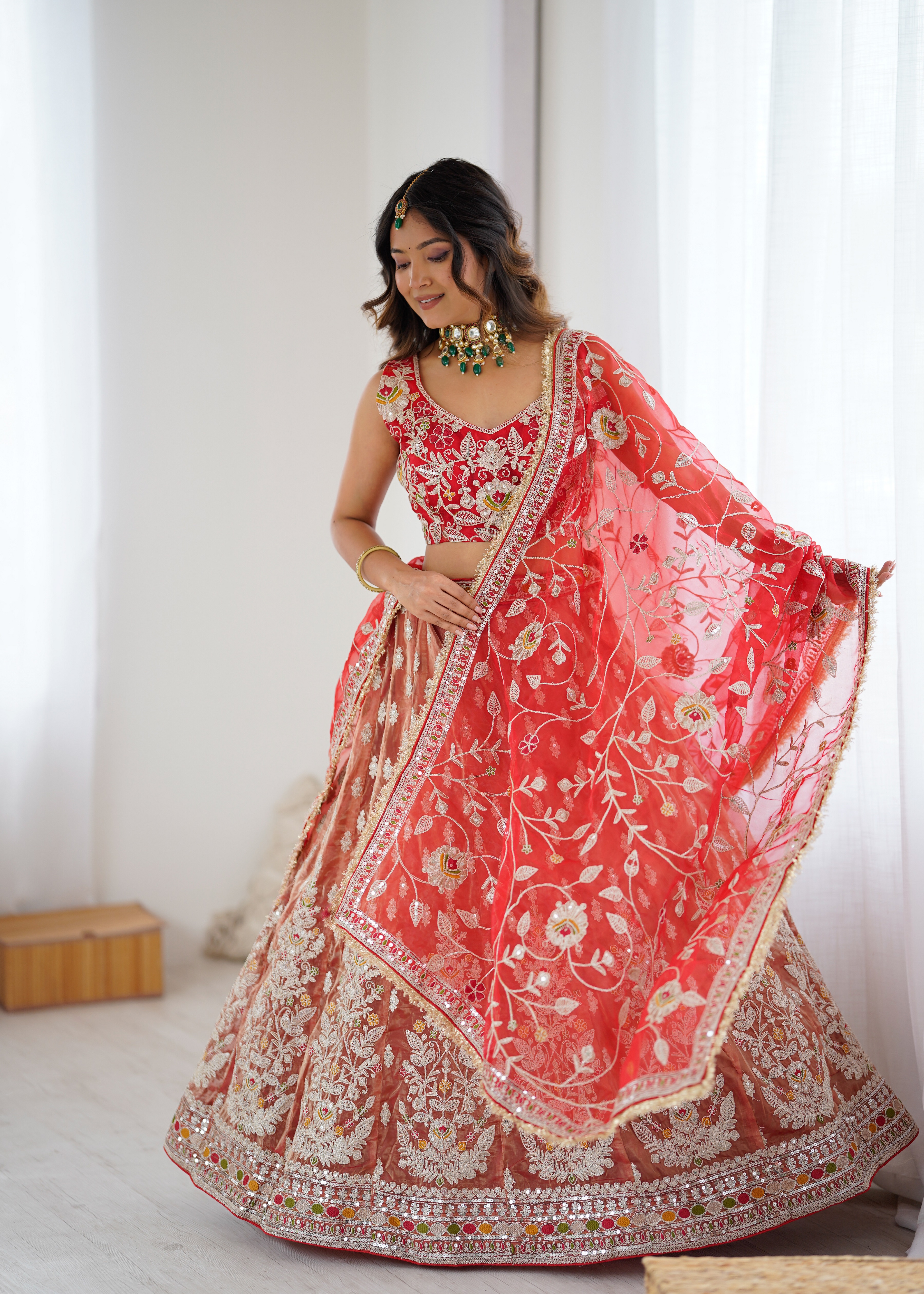 Fabric DetailsLehenga : Premium Rolex Silk Embellished With Beautiful Embroidery, Dori Work With Beautiful Heavy Sequins With Heavy Cancan And Canvas With Double Inner Covering With 3.5 Mtr Flair( Semi Stitched. )Blouse : Premium Organza Silk Embellished With Beautiful Embroidery, Dori Work With Beautiful Sequins Work Both Side Work Front And Back( Unstitched )Dupatta: Premium Organza Silk Embellished With Beautiful Embroidery, Dori Work With Beautiful Heavy Sequins Work( 2.5 MTR ).