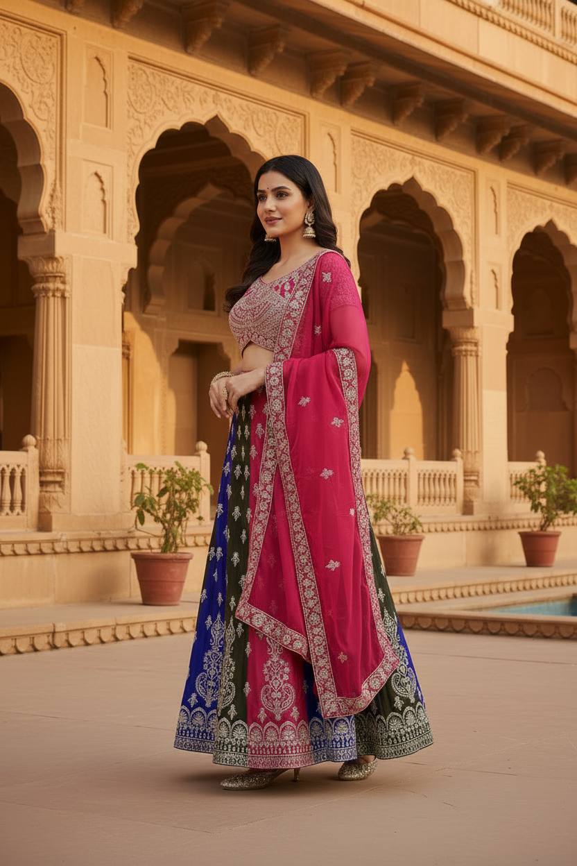 Set Includes: Semi-stitched Lehenga, Unstitched Blouse, and Dupatta