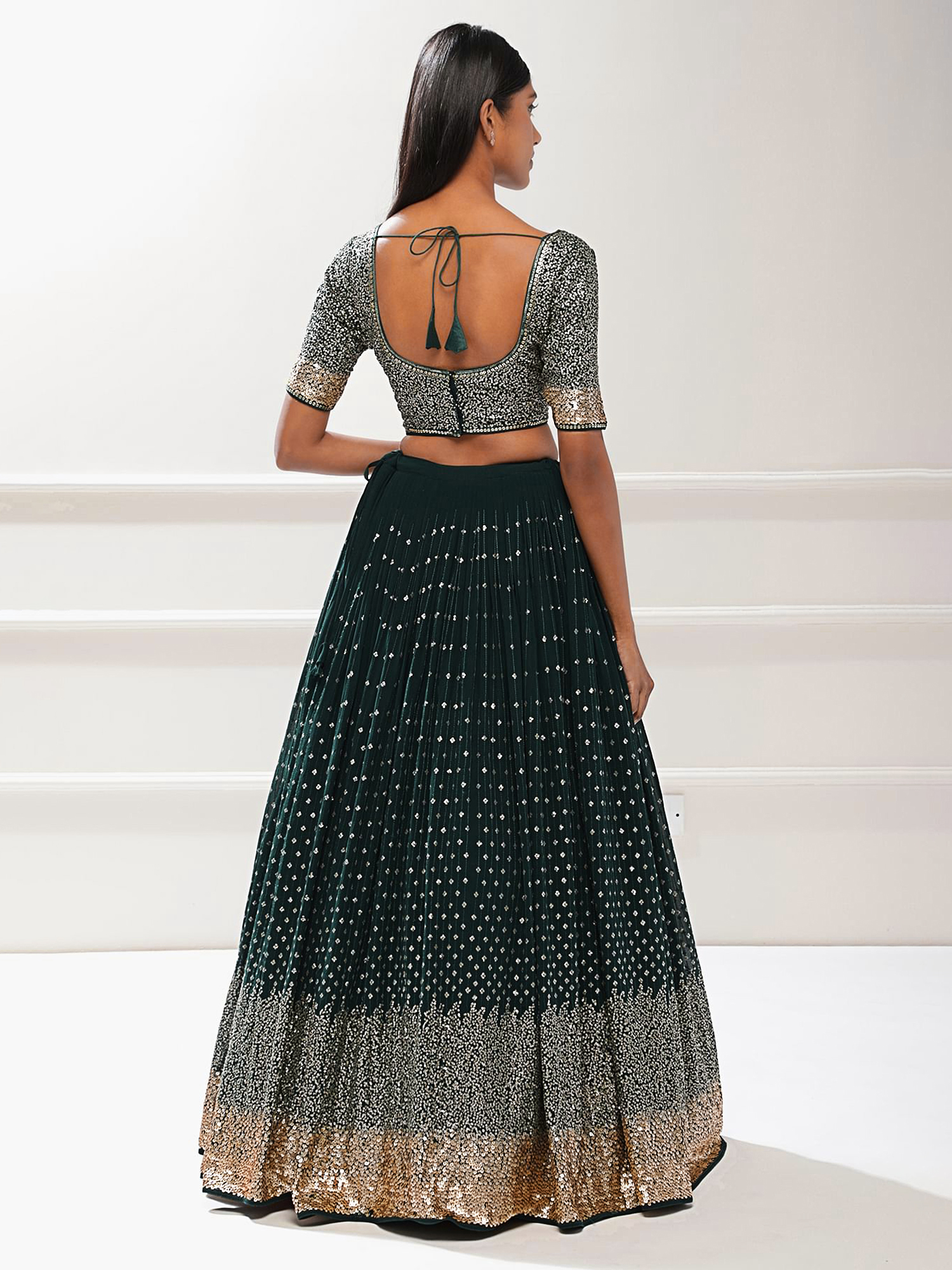 Green Color Georgette Fabric Ethnic Festive Wear Lehenga For Ceremonial Looks