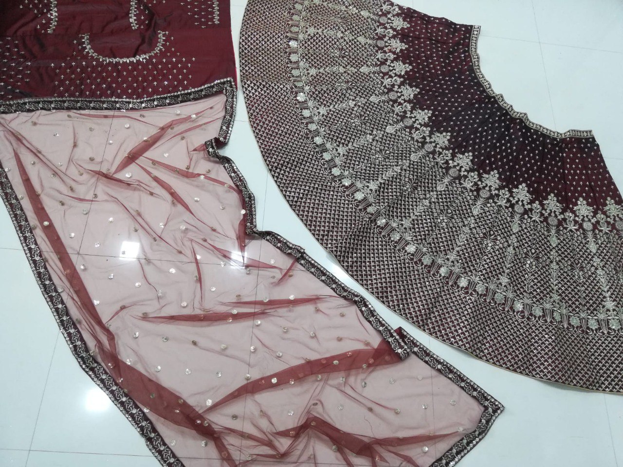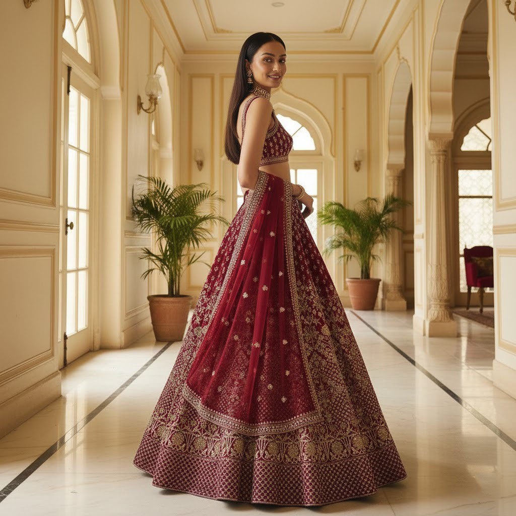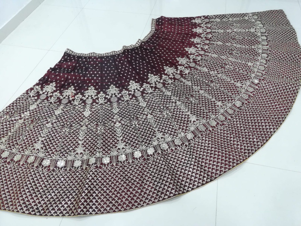 LEHENGA(BOTTOM)FABRIC:- TWO TONE TAFETA SATIN SILKINNER:- MICRO FABRIC WITH CANCAN AND CANVASWORK:- 3MM SEQUINS, CODING DORI AND JARI EMBROIDERY WORKSTITCH:- SEMI STITCHEDSIZE:- 42HEIGHT AND 42WAISTFLAIR:- 3.00 to 3.10 METER FLAIRCHOLI(TOP) :-FABRIC:- TWO TONE TAFETA SATIN SILKSIZE:- 0.80 METER WORK:- 3MM SEQUINS, CODING DORI AND JARI EMBROIDERY WORKSTITCH:- UN STITCHED DUPATTA :-FABRIC:- SOFT NETWORK:- 3MM SEQUINS AND JARI EMBROIDERY LACE BORDER WORKSIZE:- 2.25 METER DUPATTASTITCH:- FULL STITCHEDADDITIONALWASH CARE: - DRY CLEAN ONLYCOLOR: - PRODUCT COLOR MAY SLIGHTLY VARY DUE TO PHOTOGRAPHIC LIGHTNING SOURCES OR YOUR DEVICE DISPLAY SETTINGSTHESE ARE MADE TO ORDER DESIGNER STYLES, HENCE EXPECT A SLIGHT VARIATION FROM THE IMAGE DISPLAYEDIN THE BOX 1 PIECE LEHENGA 1 PIECE DUPATTA 1 PIECE BLOUSE FABRIC.