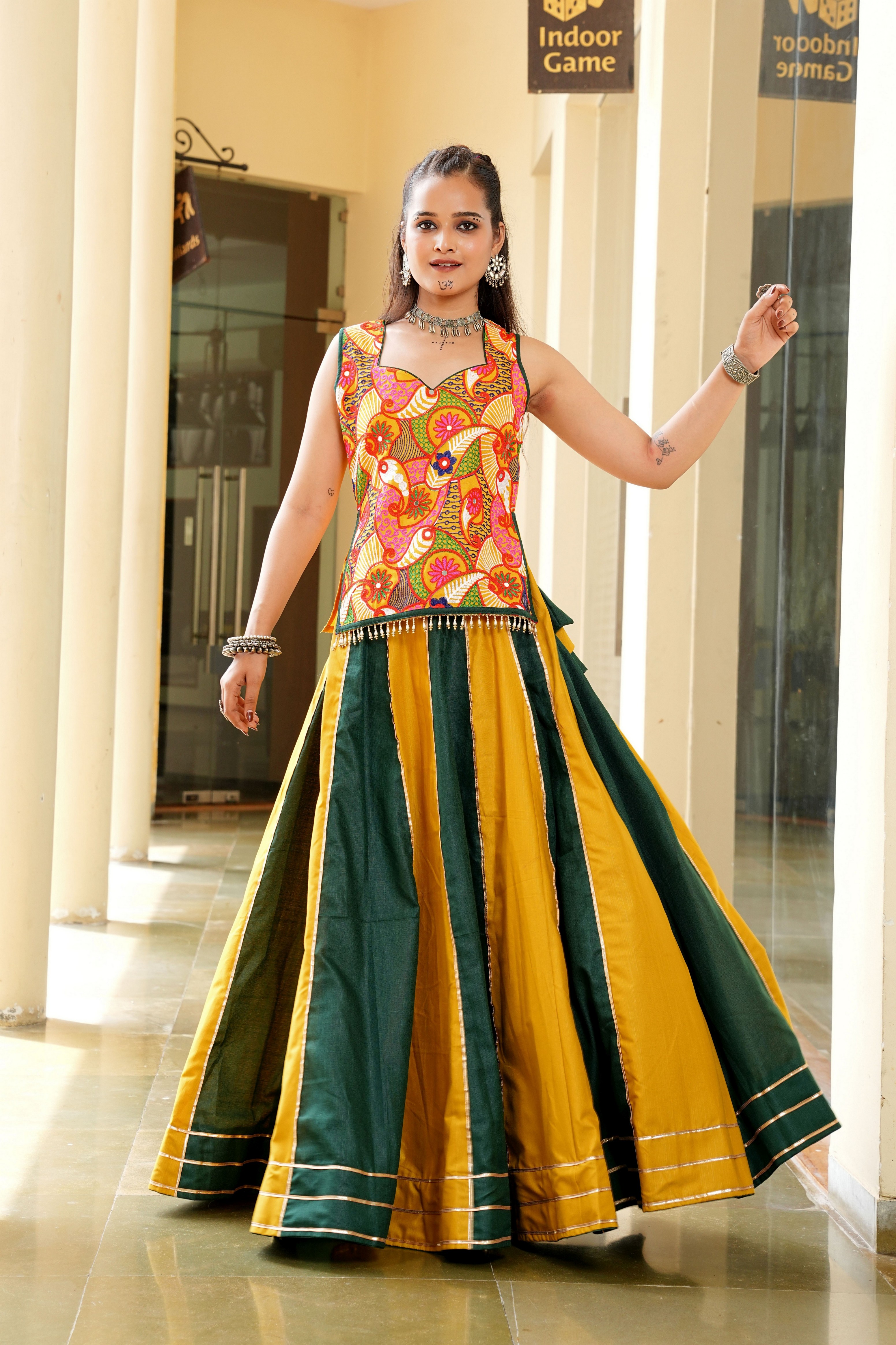 Mustard Color Ethnic Festive Special Cotton Fabric Partywear Lehenga