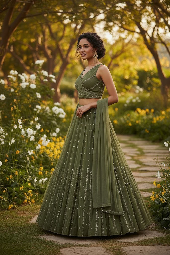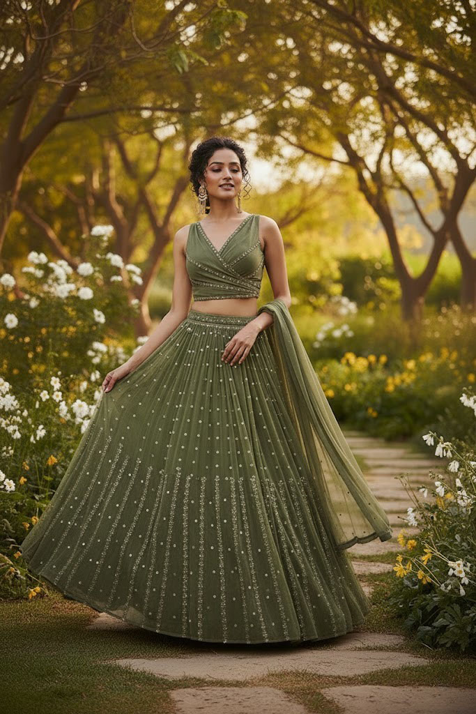 LEHENGA(BOTTOM)FABRIC:- GEORGETTEINNER:- MICRO FABRICWORK:- 3MM SEQUINS AND JARI EMBROIDERY WORKSTITCH:- SEMI STITCHED WITH CANCAN AND CANVASSIZE:- 42 HEIGHT AND 42 WAIST FLAIR:- 4.25 METER TO 4.40 METERCHOLI(TOP):-FABRIC:- GEORGETTESIZE:- 0.80 METER FABRICWORK:- 3MM SEQUINS AND JARI EMBROIDERY WORK STITCH:- UN STITCHED FABRICINNER:- MICRO FABRICDUPATTA:-FABRIC:- GEORGETTEWORK:- 3MM SEQUINS AND JARI EMBROIDERY BORDER WORK SIZE:- 2.25 METER DUPATTASTITCH:- FULL STITCHEDADDITIONALWASH CARE: - DRY CLEAN ONLYCOLOR: - PRODUCT COLOR MAY SLIGHTLY VARY DUE TO PHOTOGRAPHIC LIGHTNING SOURCES OR YOUR DEVICE DISPLAY SETTINGSTHESE ARE MADE TO ORDER DESIGNER STYLES, HENCE EXPECT A SLIGHT VARIATION FROM THE IMAGE DISPLAYEDIN THE BOX 1 PIECE LEHENGA 1 PIECE DUPATTA 1 PIECE BLOUSE FABRIC (1 SET OF HAND MADE TASSELS)ALTERNATIVEHANDMADE TASSELS MAY DIFFER FROM THE PHOTOS AND VIDEOS. TASSELS WILL BE AVAILABLE AS LONG AS THE CURRENT STOCK LASTS. ALTERNATIVELY, NEW STOCK MAY TAKE SOME TIME TO ARRIVE. WE ARE NOT STRICTLY BOUND TO PROVIDE TASSELS.
